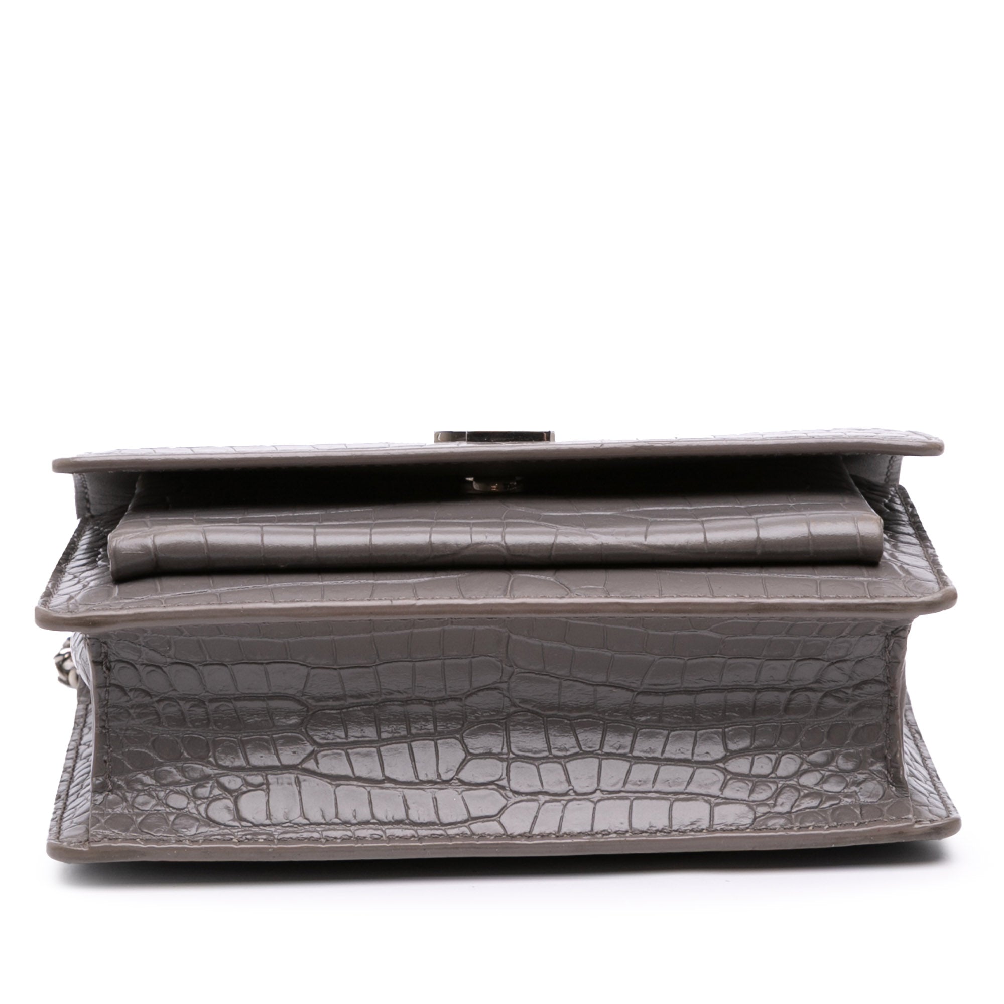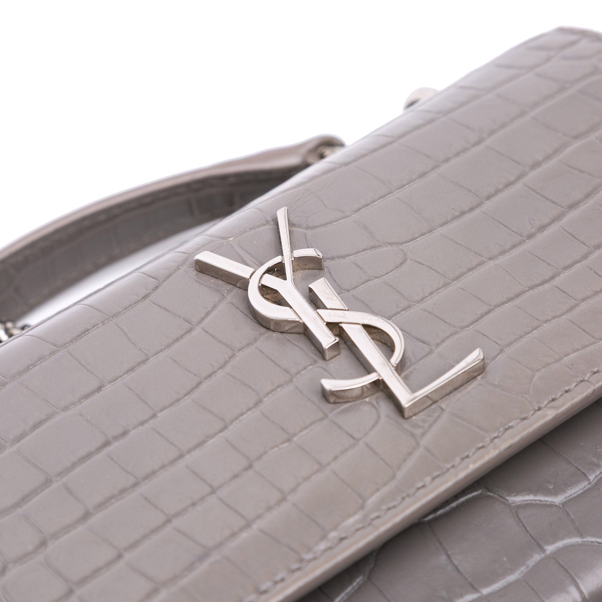Saint Laurent Croc Embossed Leather Monogram Sunset Chain Wallet