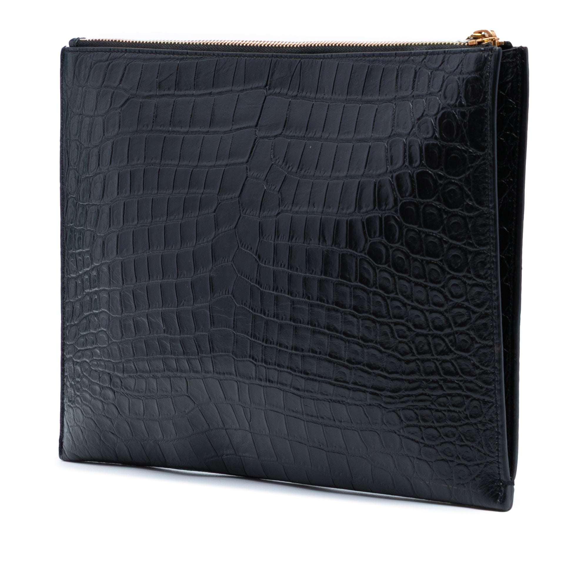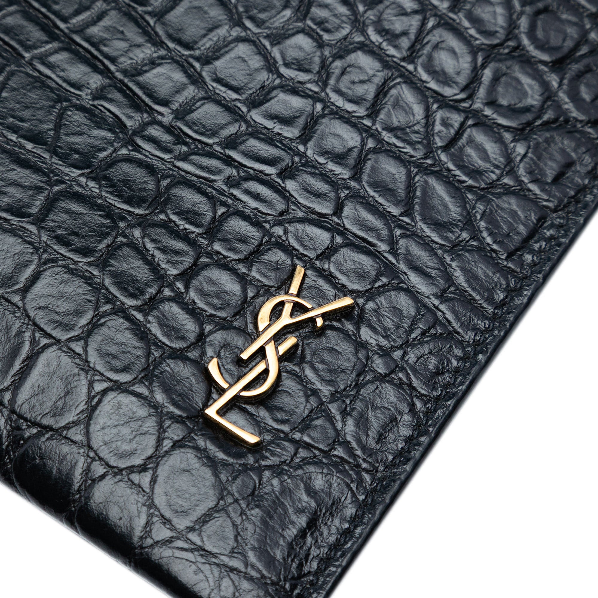 Saint Laurent Croc Embossed Leather Tiny Monogram Zipped Tablet Holder