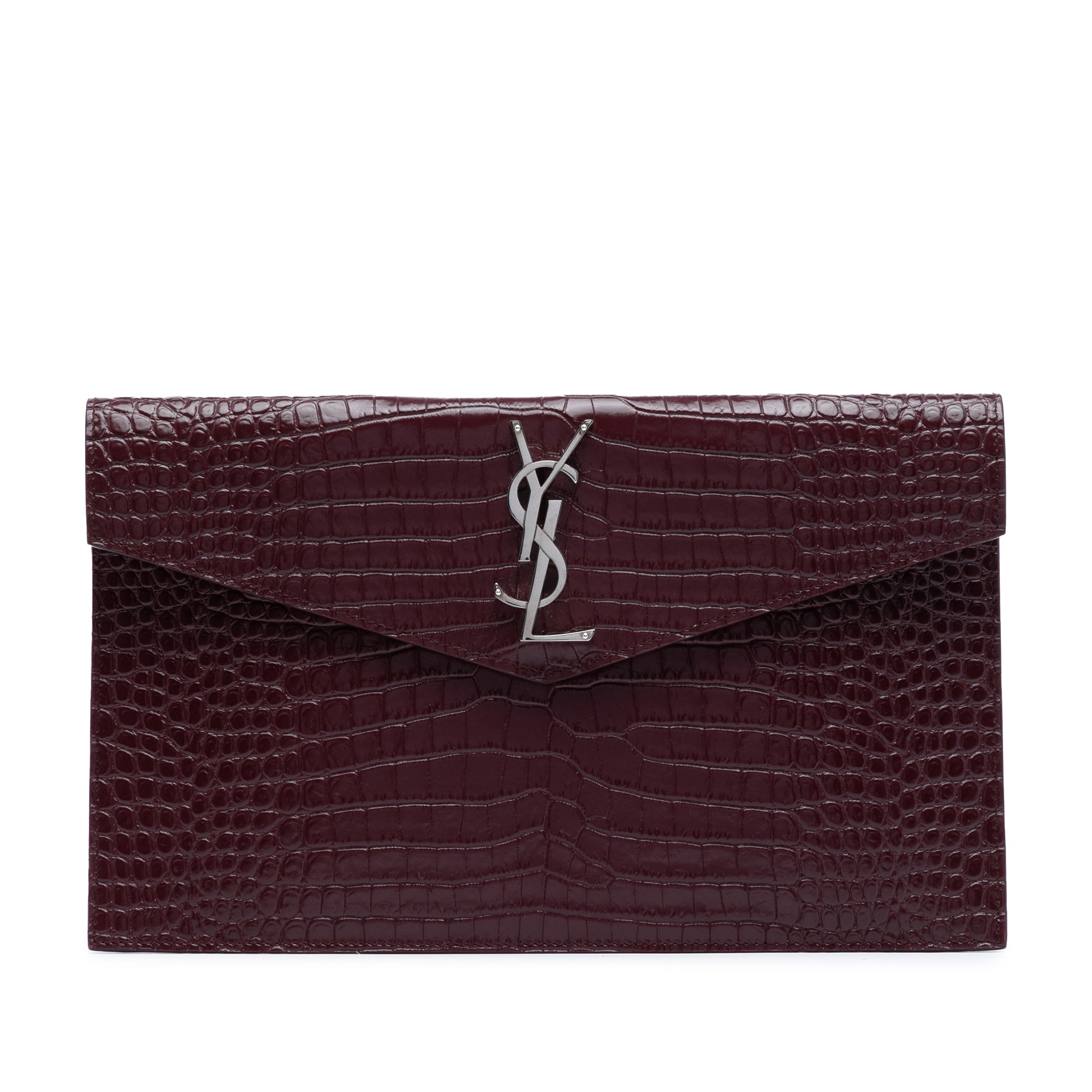 Saint Laurent Croc Embossed Leather Uptown Pouch
