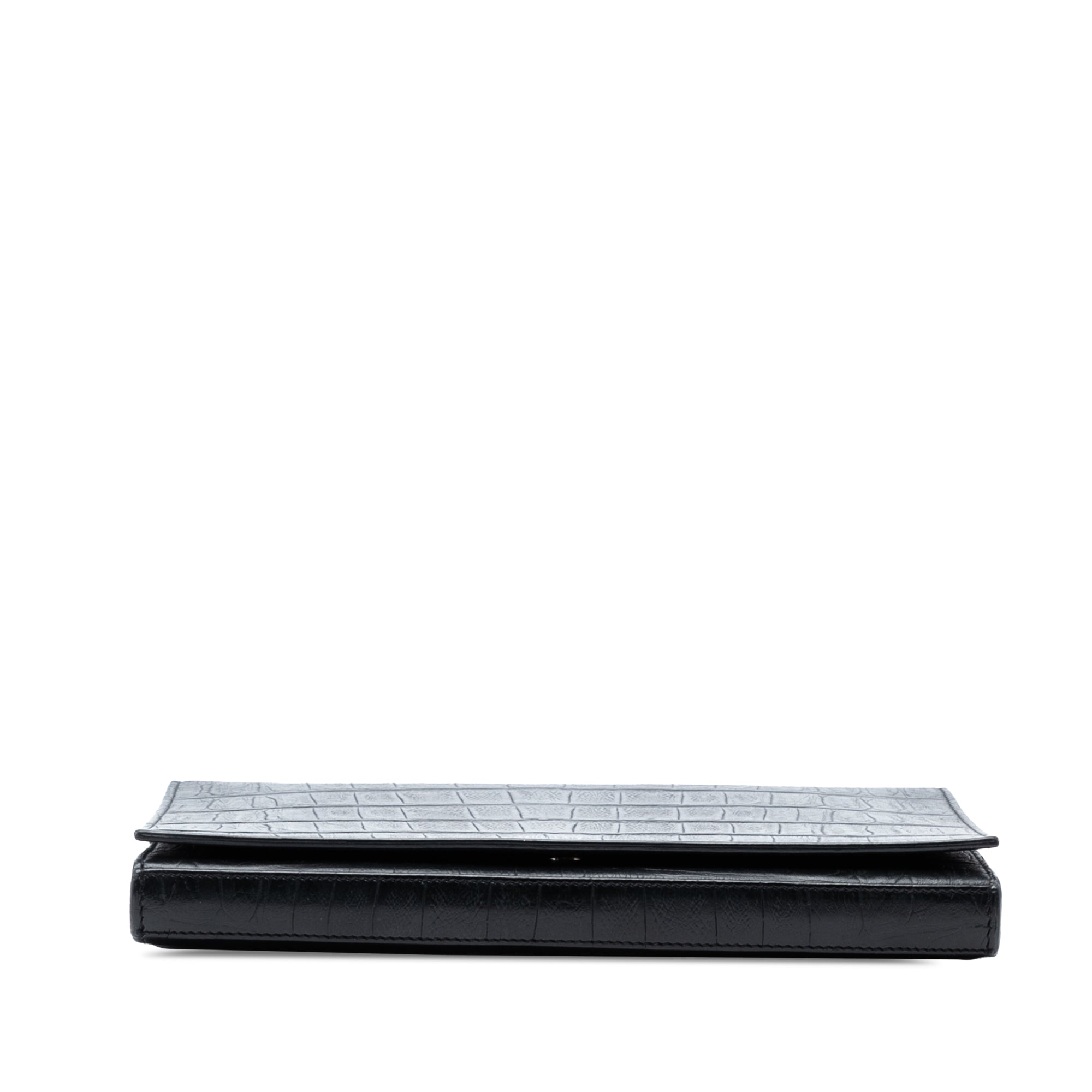 Saint Laurent Croc Embossed Leather Wallet On Chain