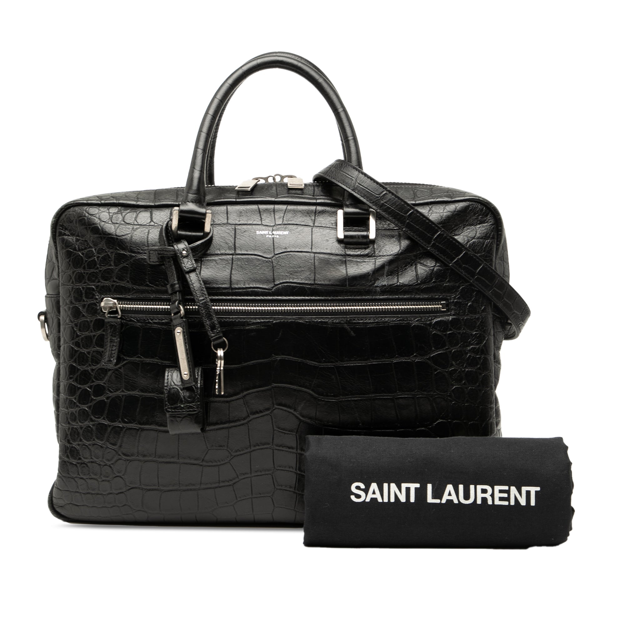 Saint Laurent Crocodile Embossed Leather Sac de Jour Briefcase