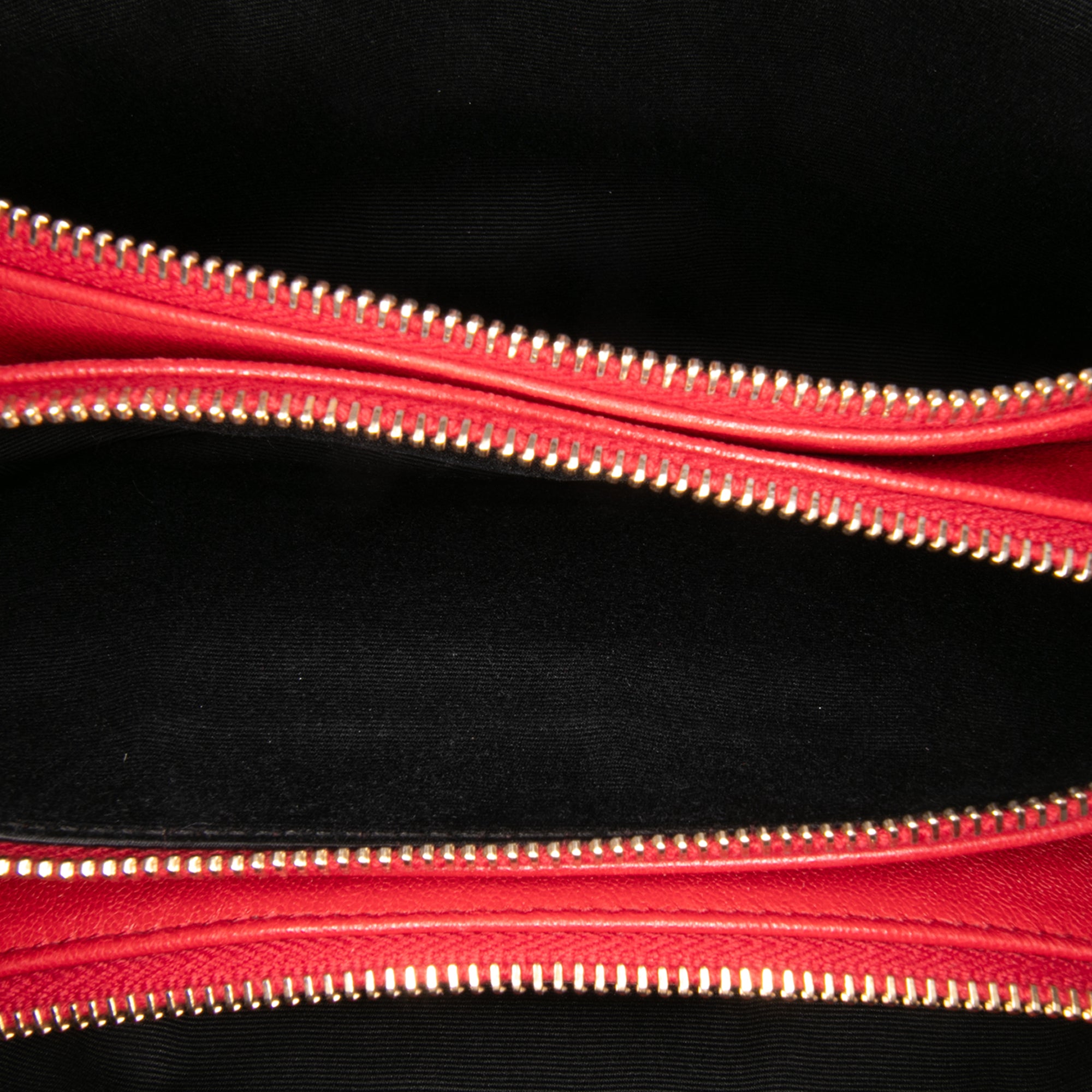 The Angie features a quilted lambskin leather body, a chain link and leather shoulder strap, a front flap with magnetic snap closure, and top zip closures. Retail Price: 2250.00