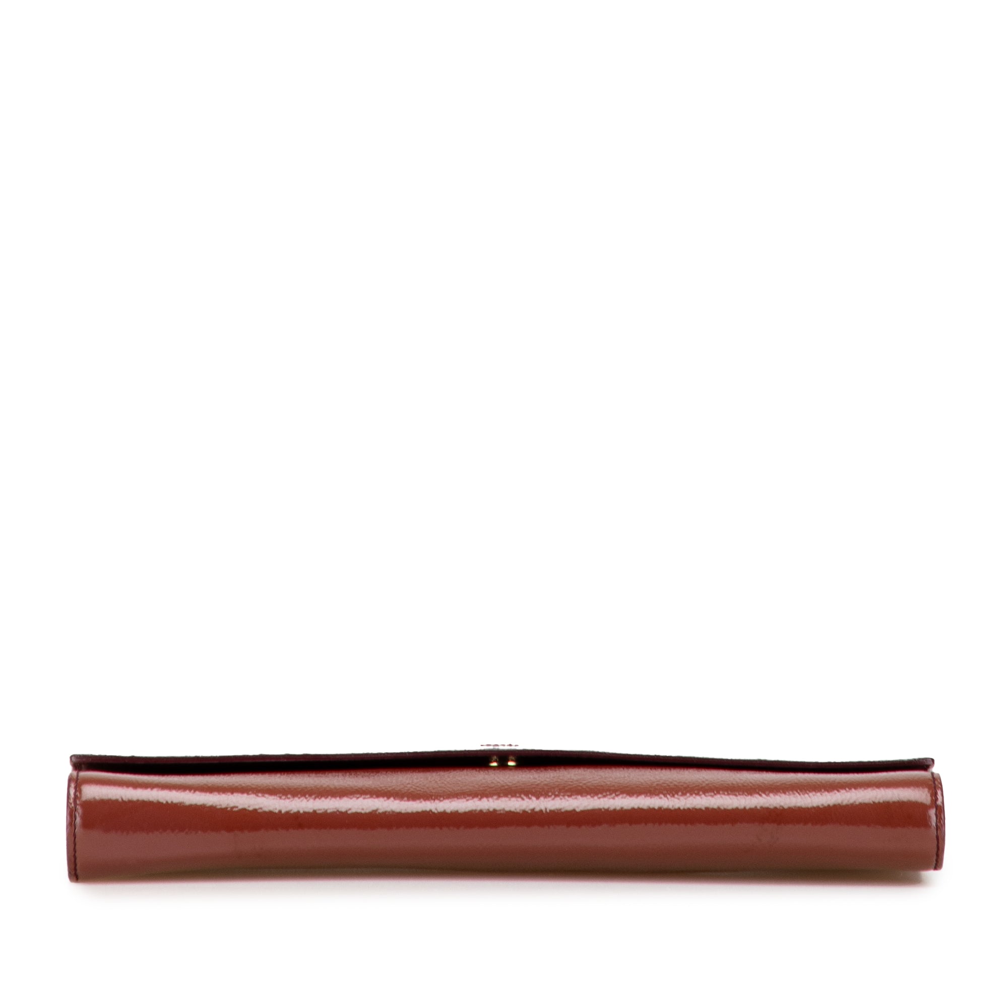 This clutch features a patent leather body, a front flap with magnetic closure, and an interior slip pocket. Inclusion: Dust bag. Retail Price: 995.00