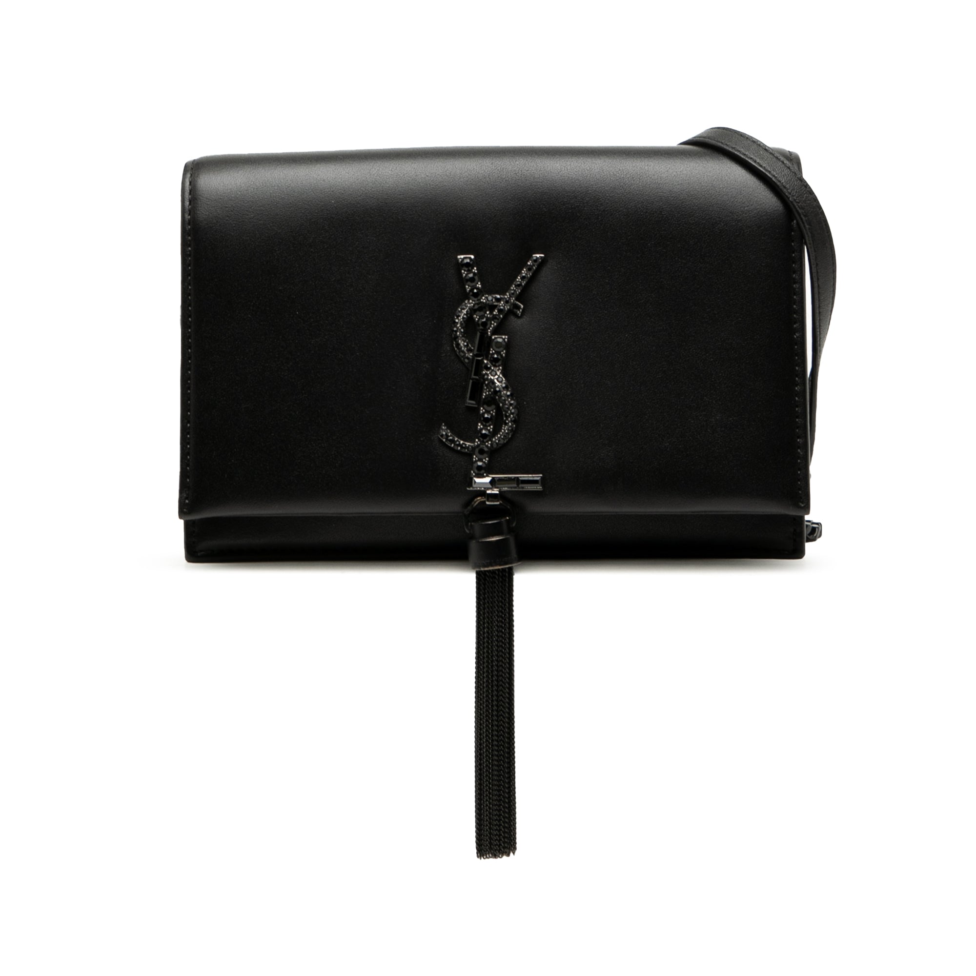 Saint Laurent Leather Beaded Hardware Monogram Kate Tassel Wallet on Chain