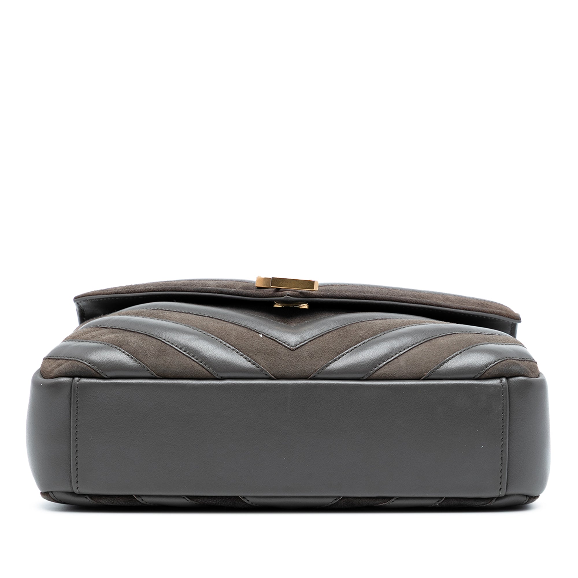 Saint Laurent Medium Calfskin and Suede Chevron Monogram College Satchel