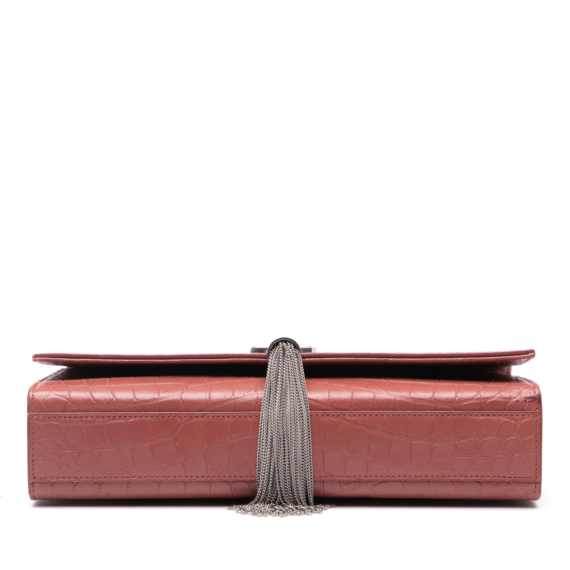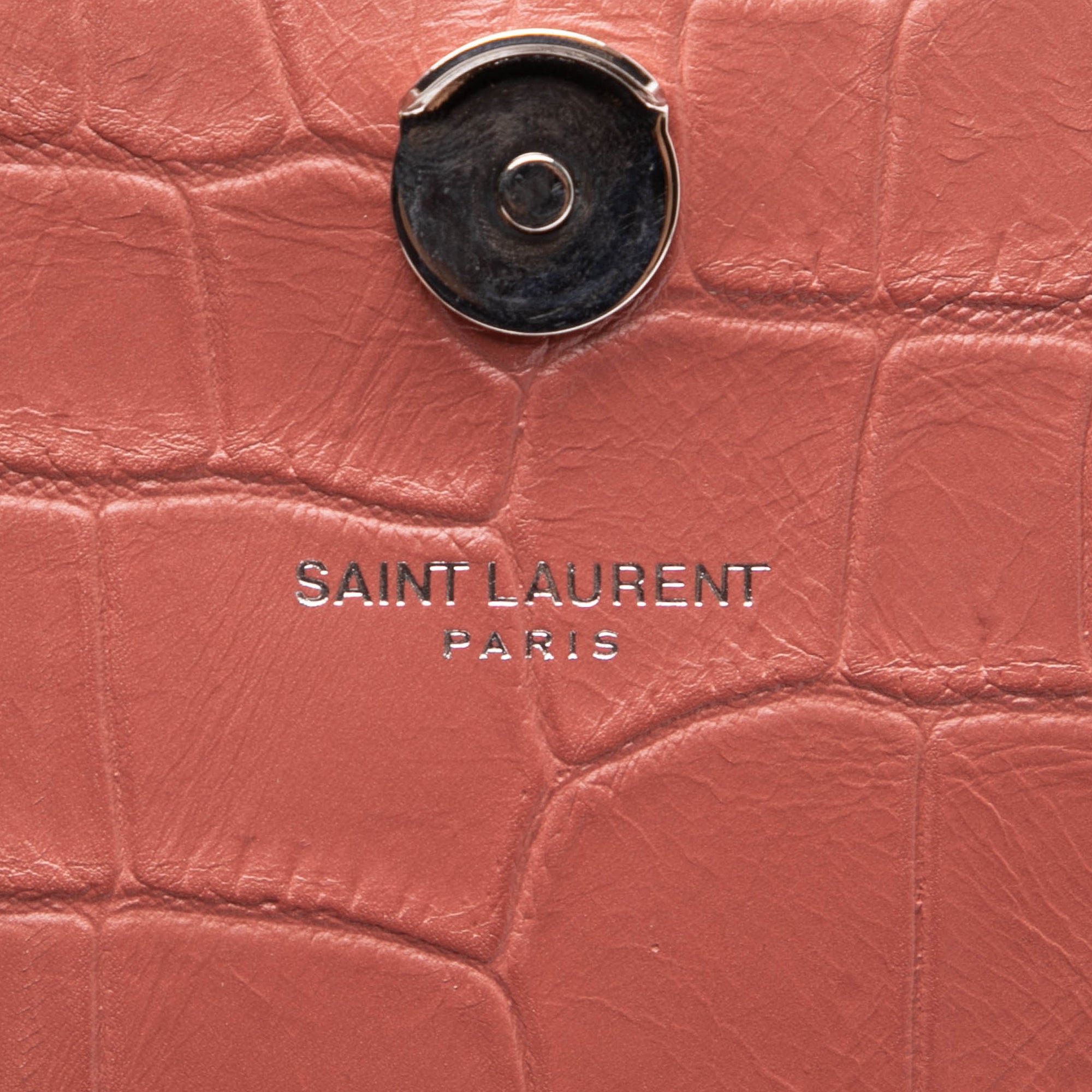 Saint Laurent Medium Croc Embossed Leather Kate Tassel Crossbody