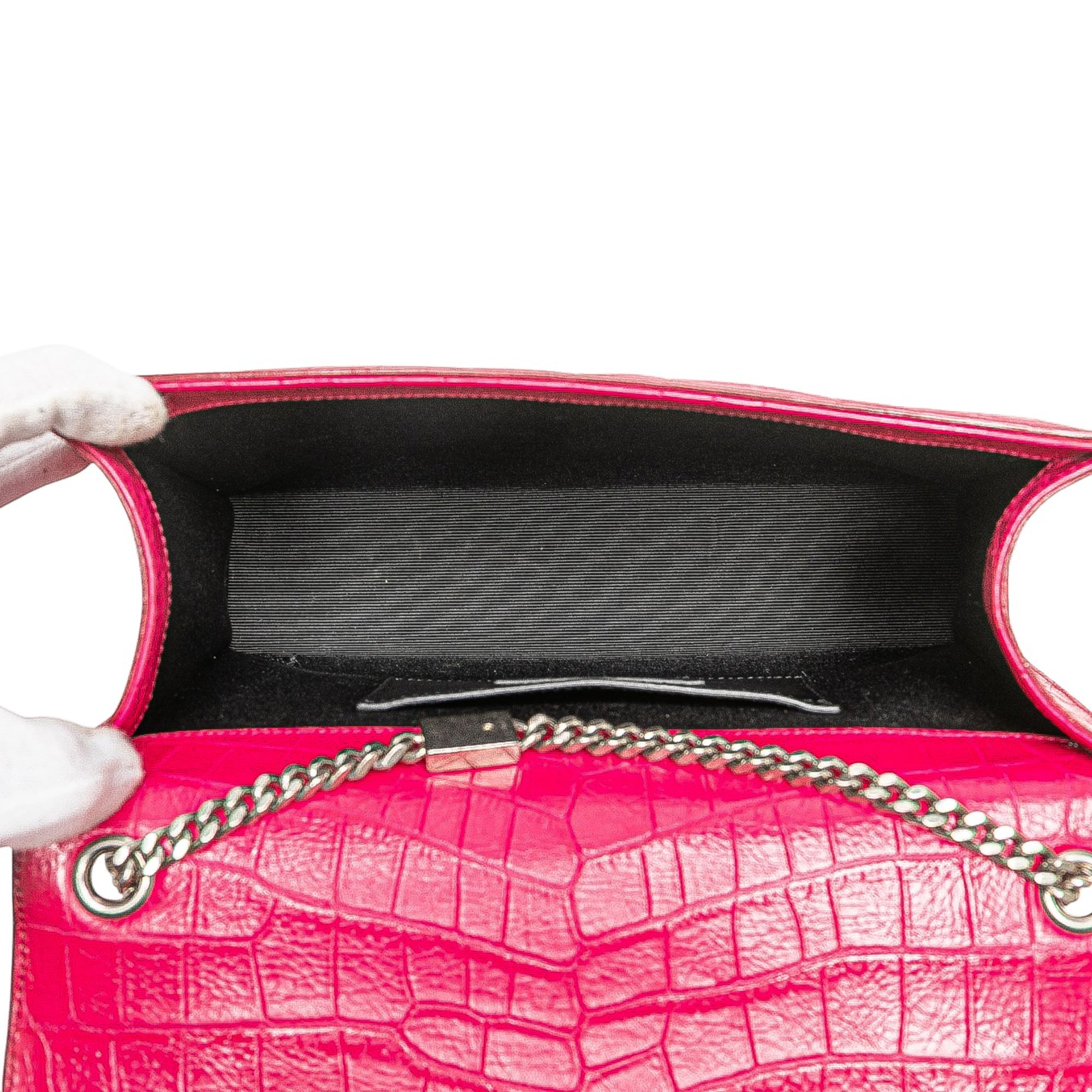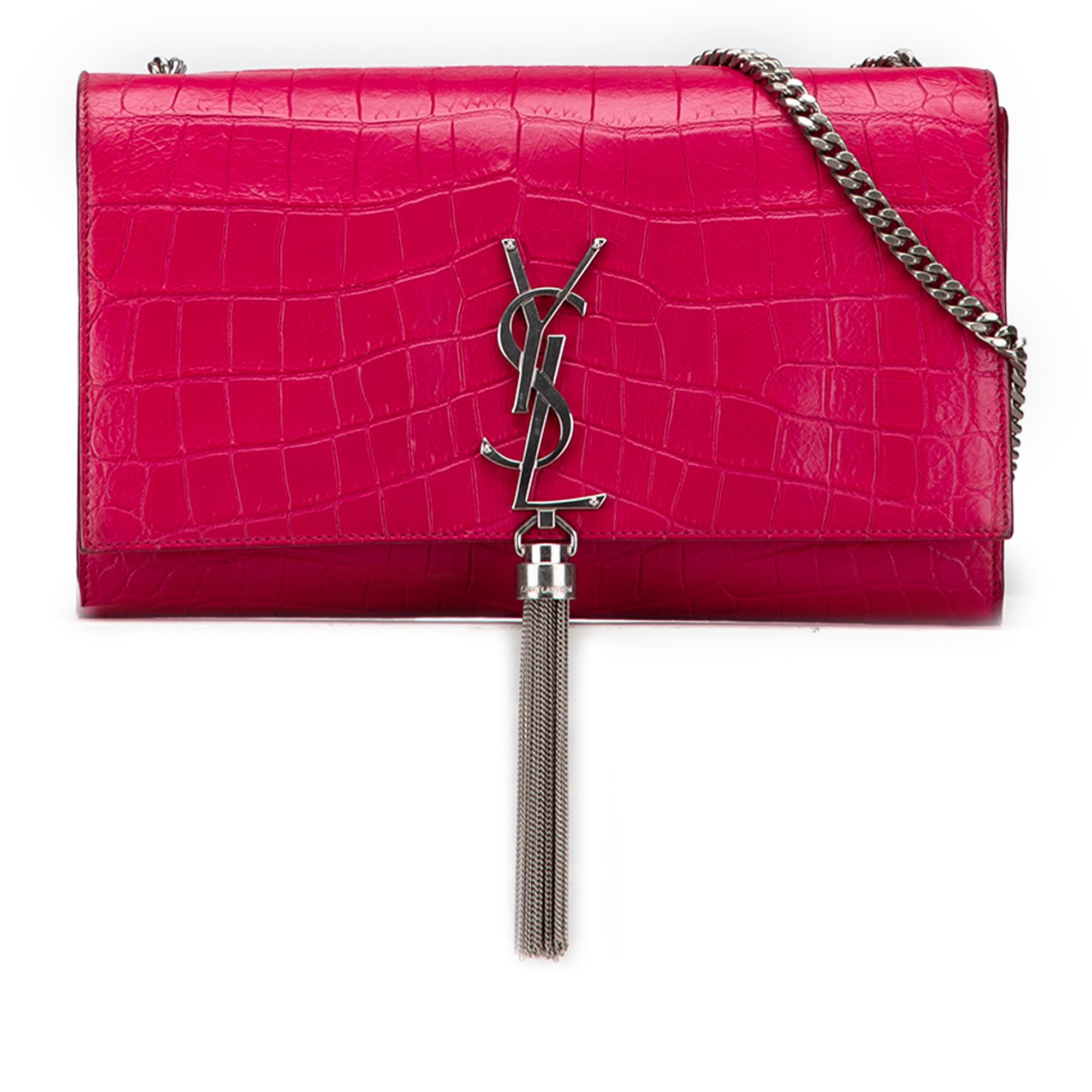 Saint Laurent Medium Croc Embossed Leather Kate Tassel Crossbody