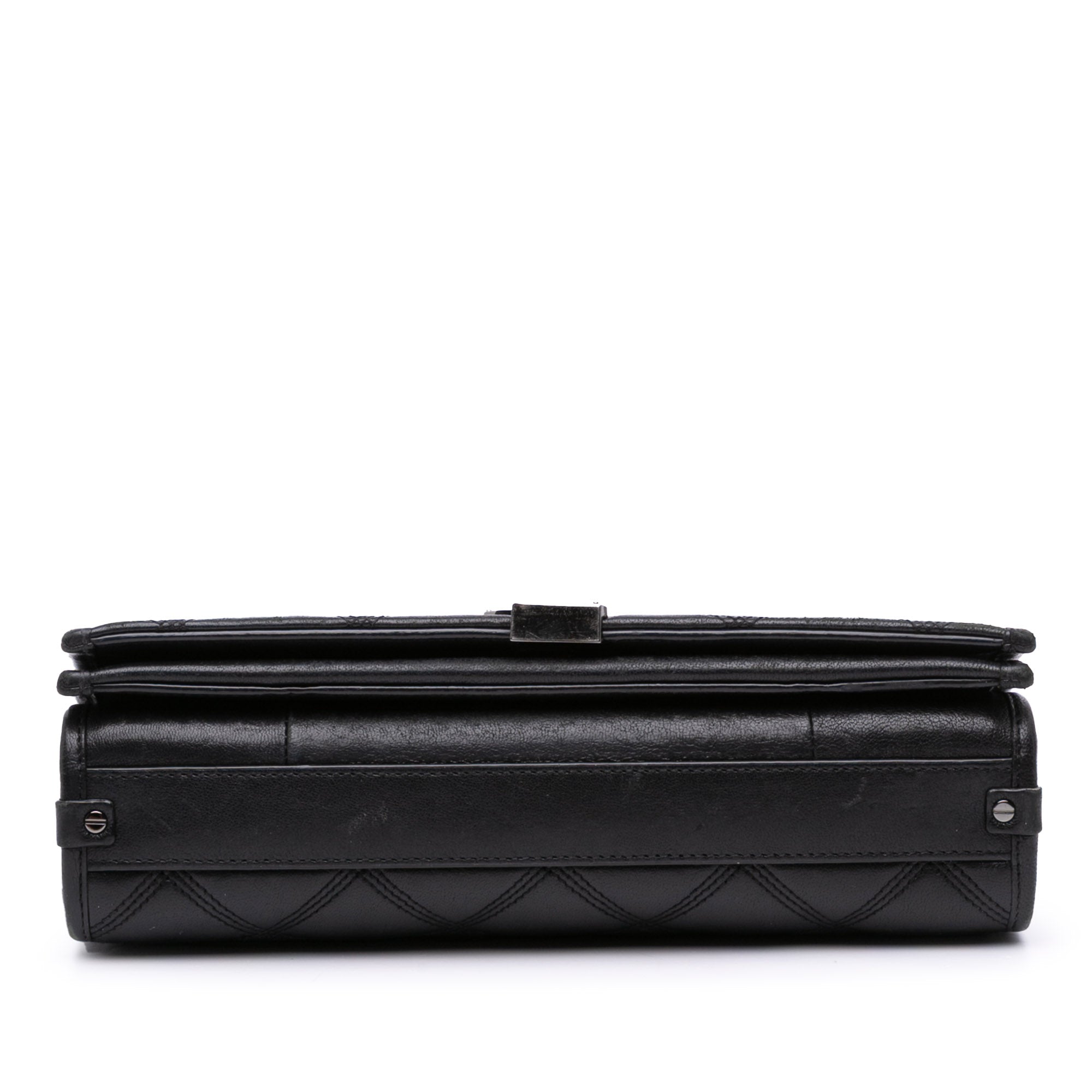 The Mini Becky features a quilted leather body, chain link straps with leather shoulder guard, a front flap with magnetic snap closure, and an interior zip pocket. Retail Price: 3150.00
