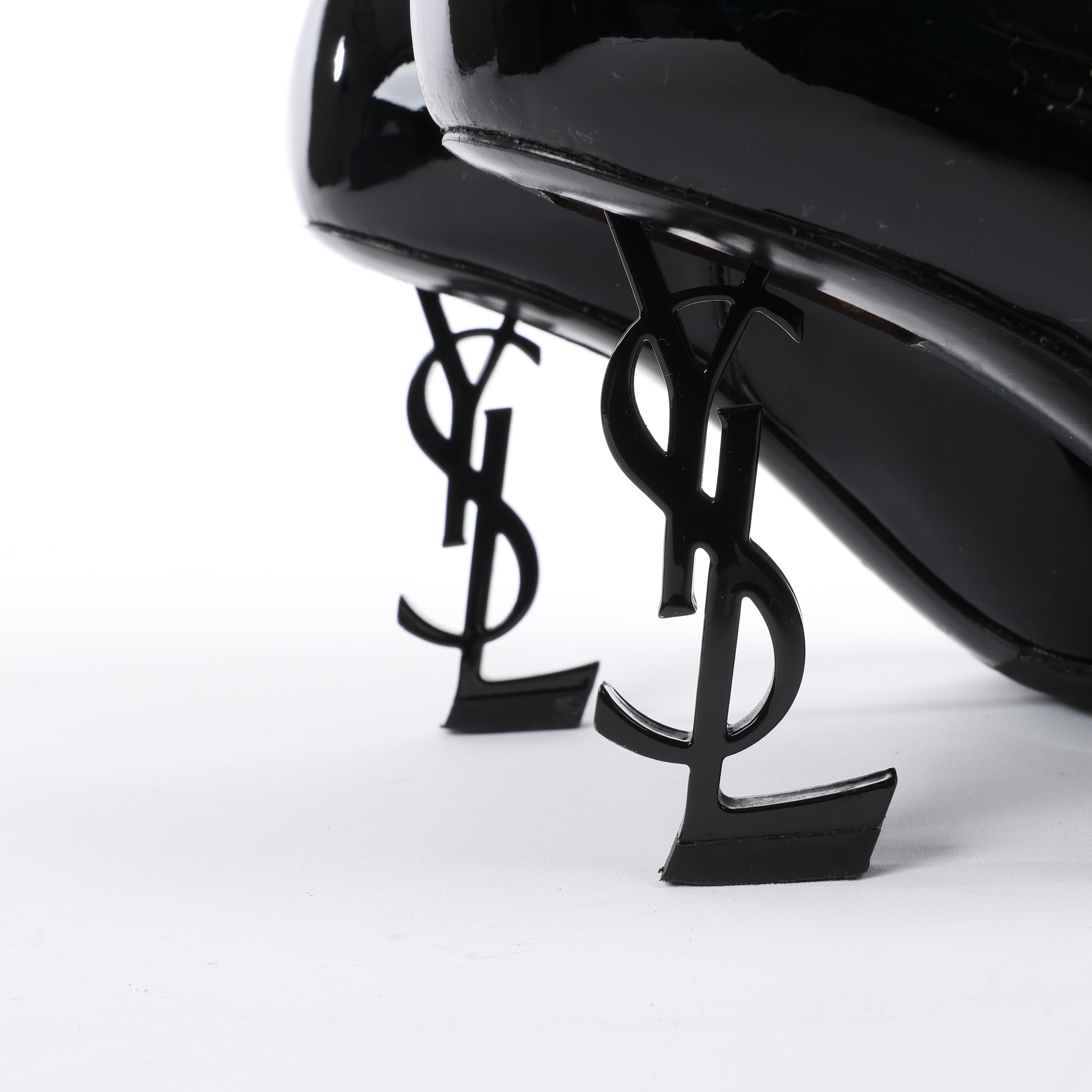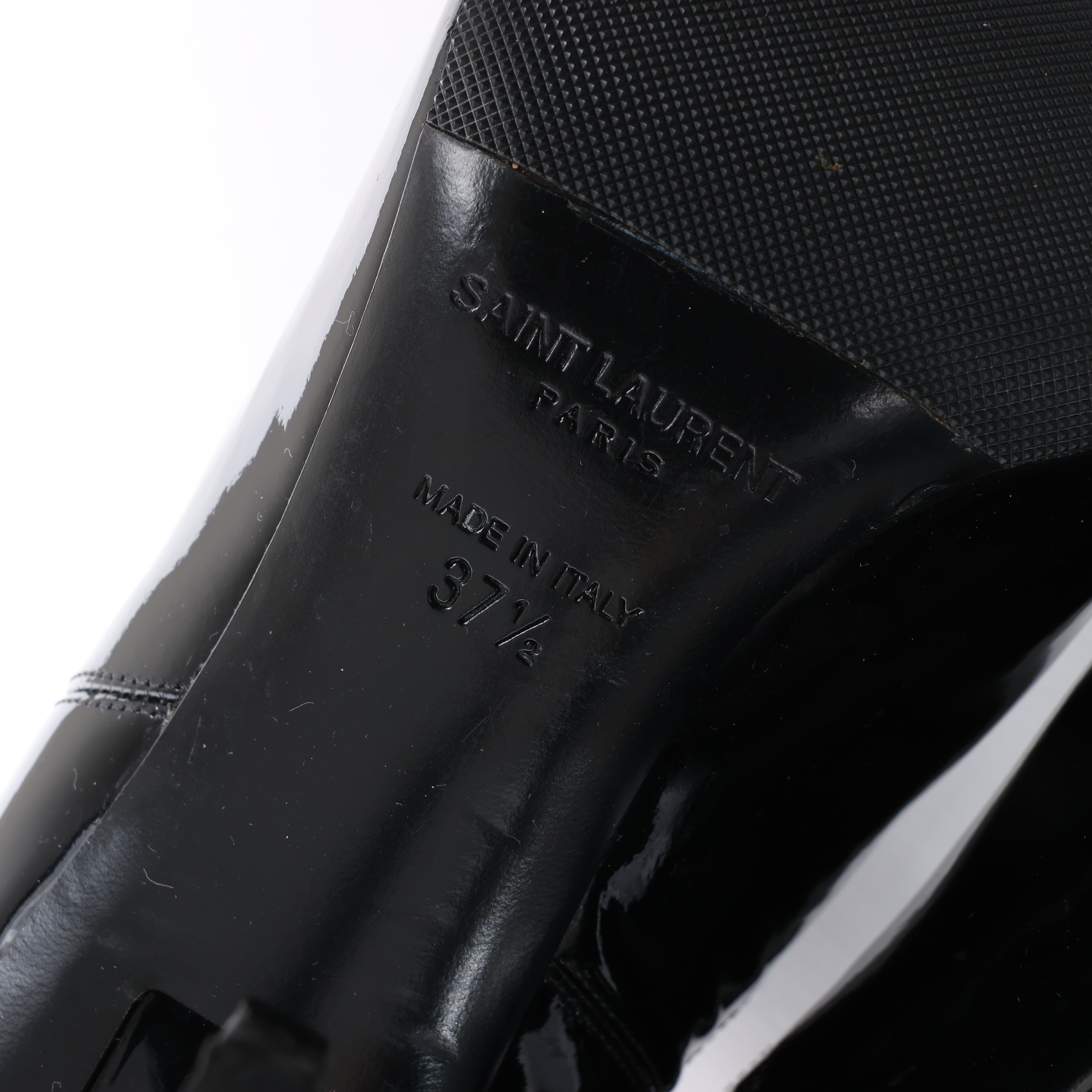 Brand: Saint LaurentSize: EU 37.5Approx. inner lenght: 24.5 cmHeel Height: 8.5 cmShaft: 11.5 cmCondition: ExcellentCondition Details: There is some signs of use like creases. Outsole has been restored.Color: BlackMaterial: Patent LeatherComes With: Box, Dustbags