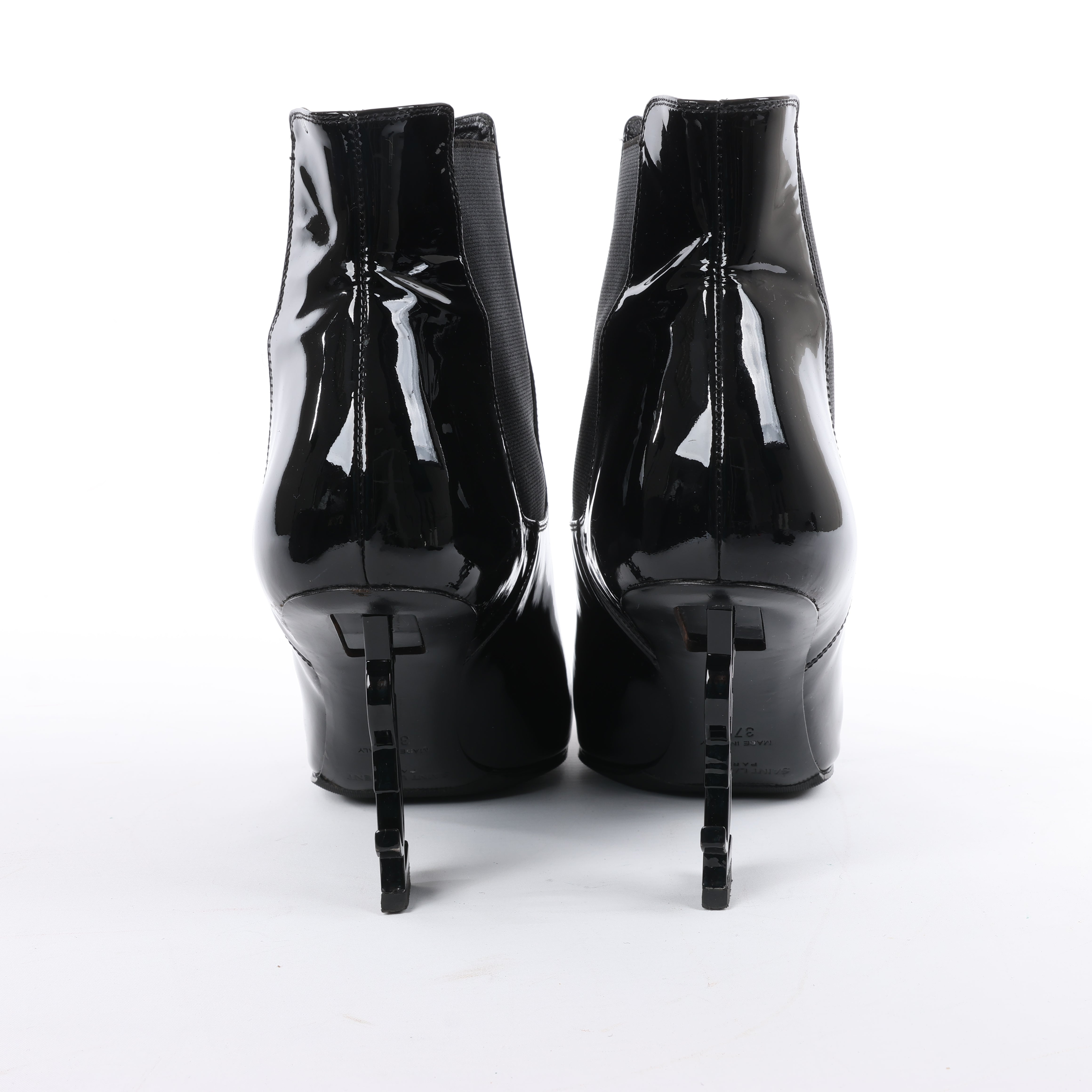 Saint Laurent Paris Opium Patent leather Ankle Boots in Black AU484171 , Size 37.5 EU