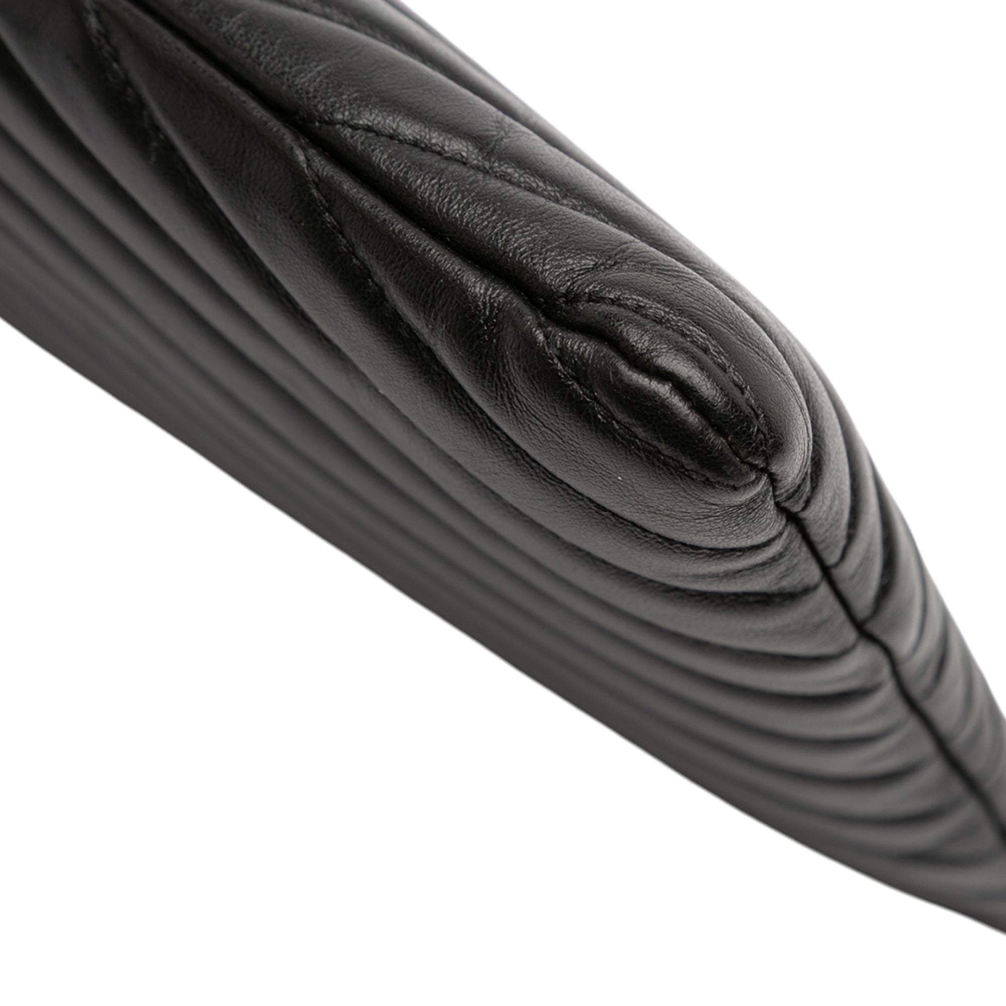 This clutch bag features a quilted leather body, a detachable flat leather wrist strap, a top zip closure, and interior slip pockets. Retail Price: 800.00