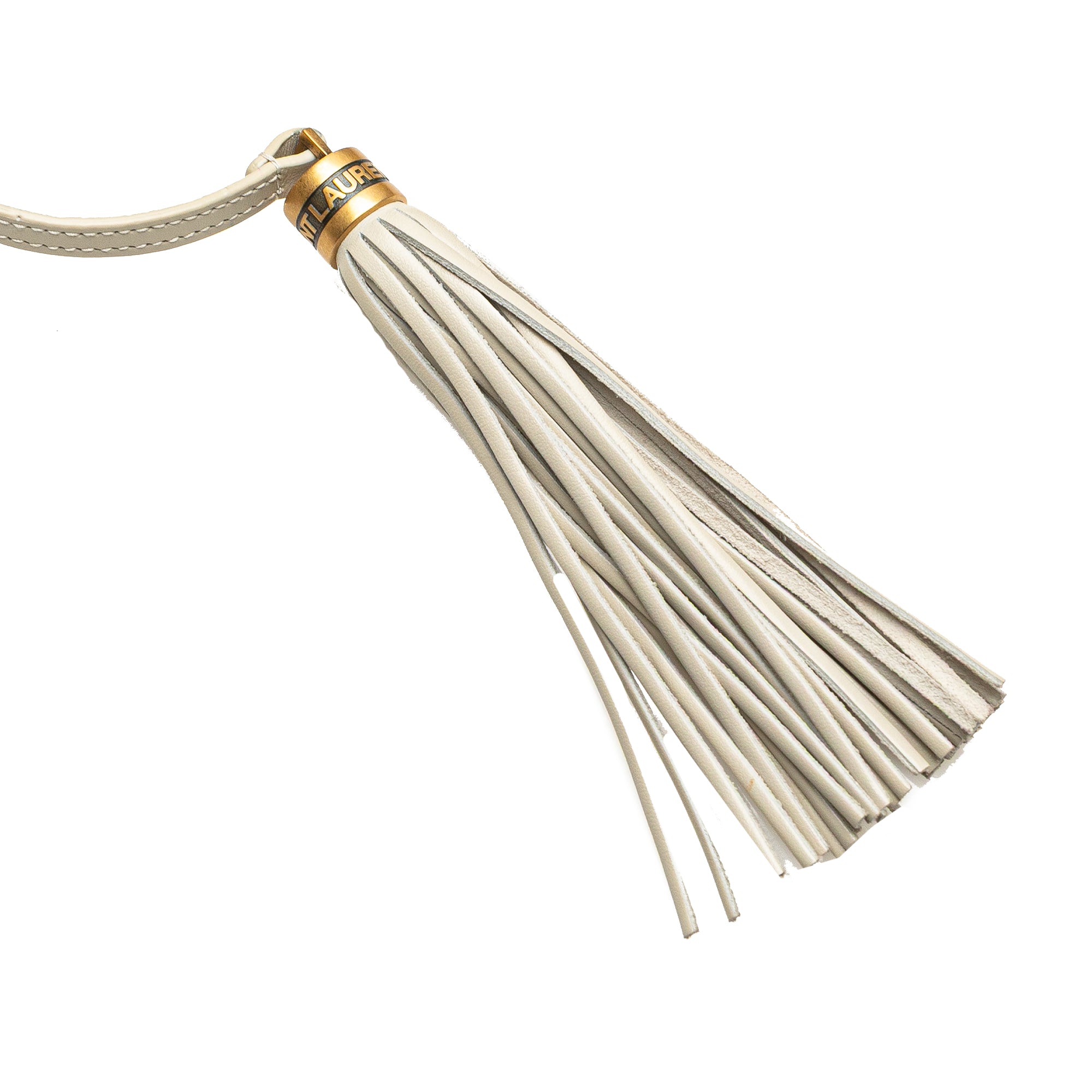 The Lou Camera bag features a quilted leather body, an adjustable flat leather shoulder strap with tassel detail, a top zip closure, and an interior slip pocket. Retail Price: 2900.00