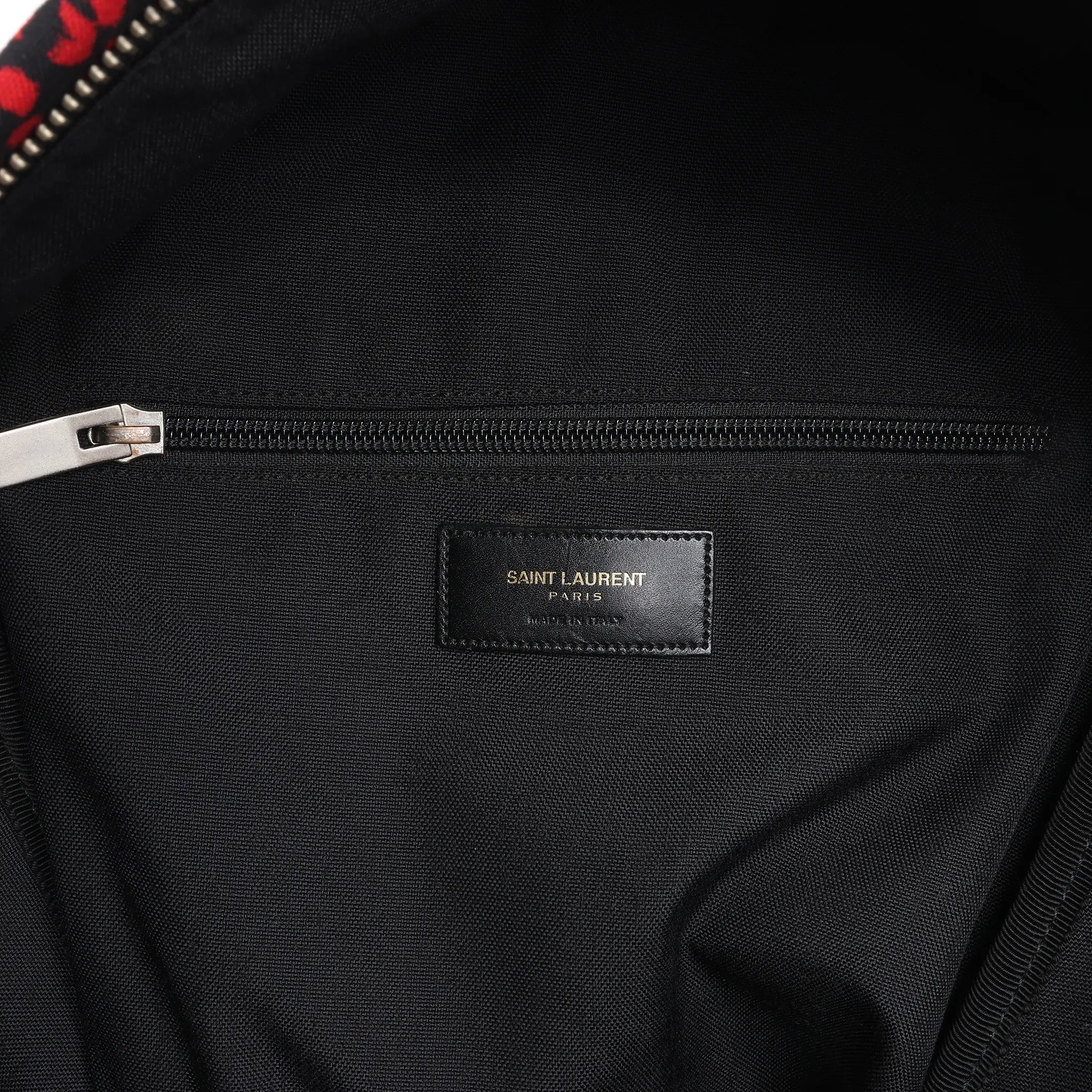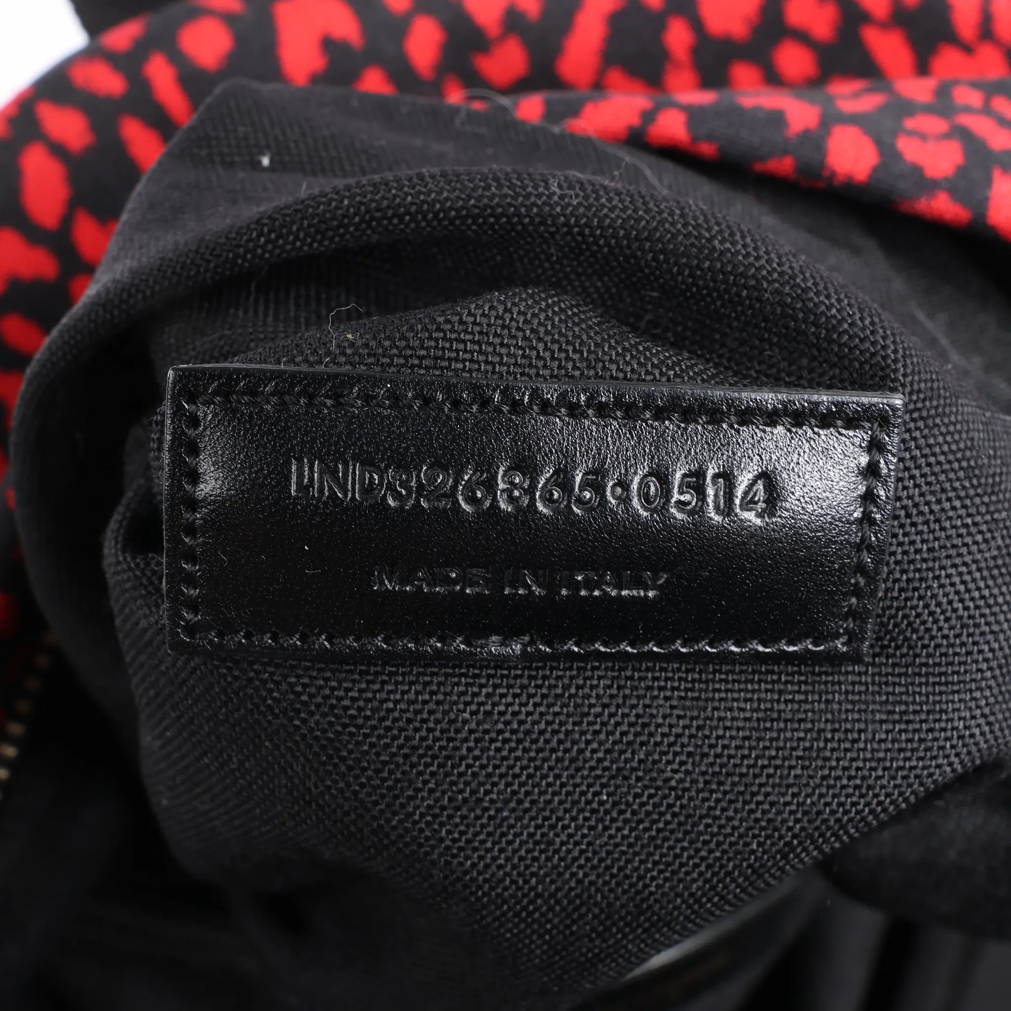 Brand: SAINT LAURENT Model: Leopard HuntingSize: -Width: 30 cmHeight: 38 cmExterior Condition: ExcellentInterior Condition: ExcellentCondition Details: The exterior is in excellent condition. The leather parts are in great condition with some scratches The straps are clean in very good condition. The hardware is in good condition with scratches. The interior lining is overall in great condition, except some dust.Colour: Red, BlackInterior Colour: BlackHardware Colour: SilverMaterial: Cloth, LeatherComes With: -