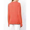 90s Yves Saint Laurent salmon-pink cashmere crew-neck sweater with black ribbed edges.