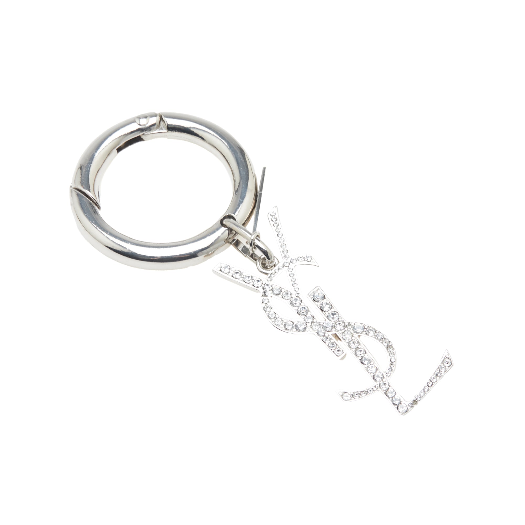 Saint Laurent Silver Plated Rhinestones Logo Keychain