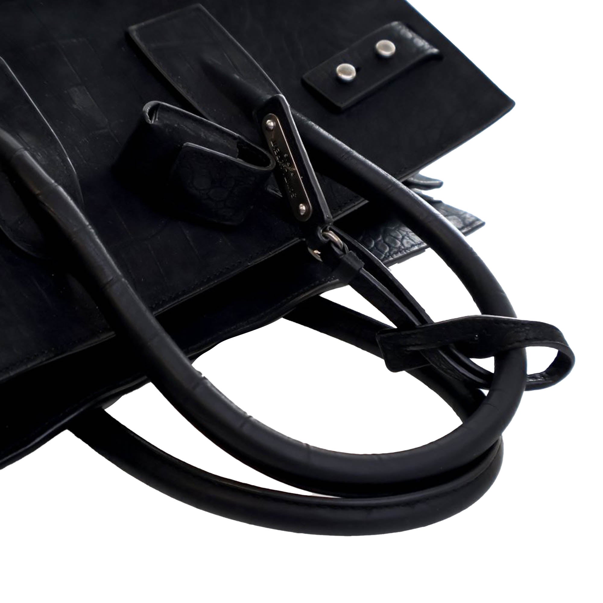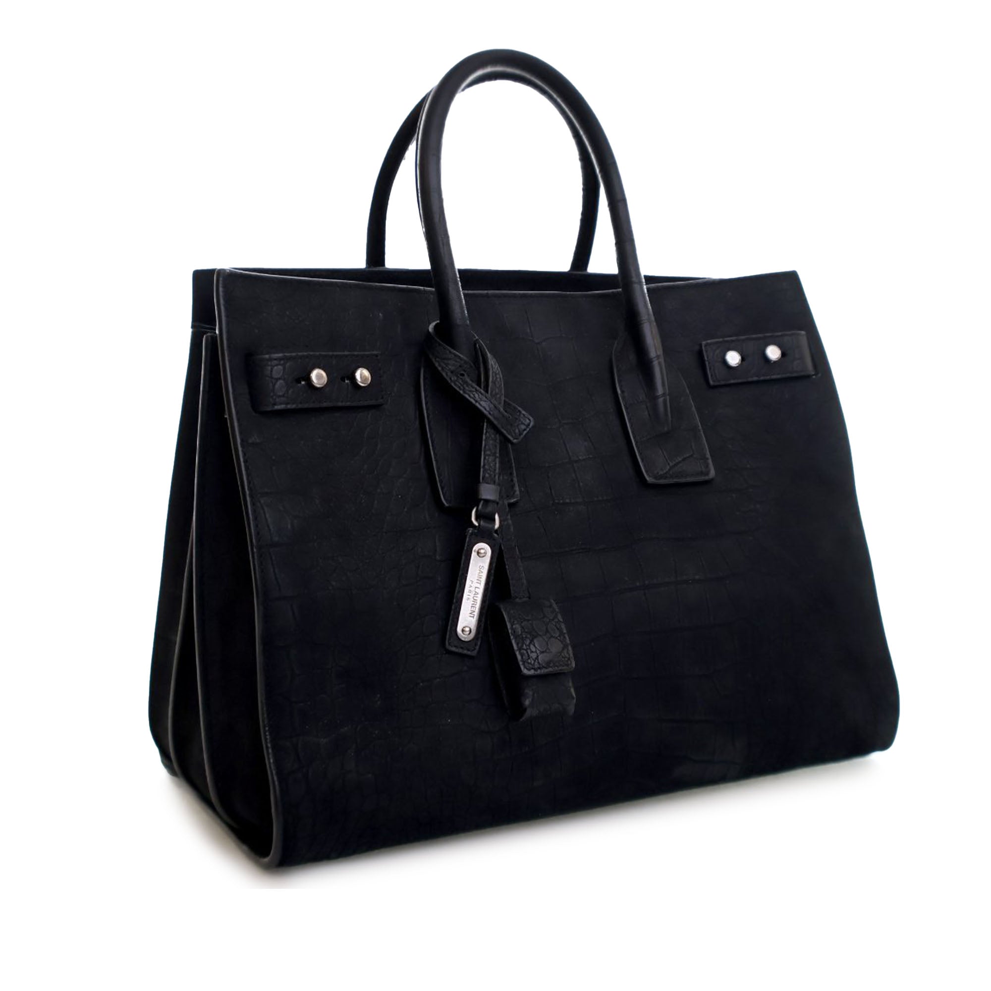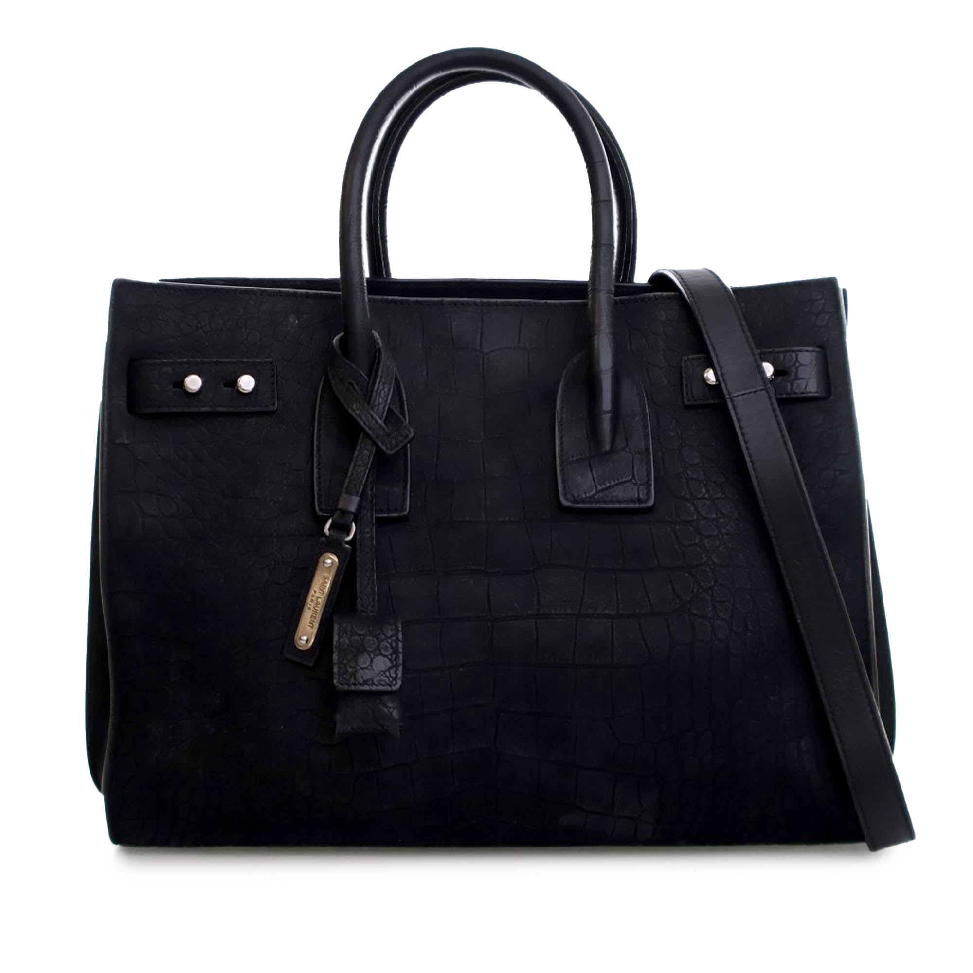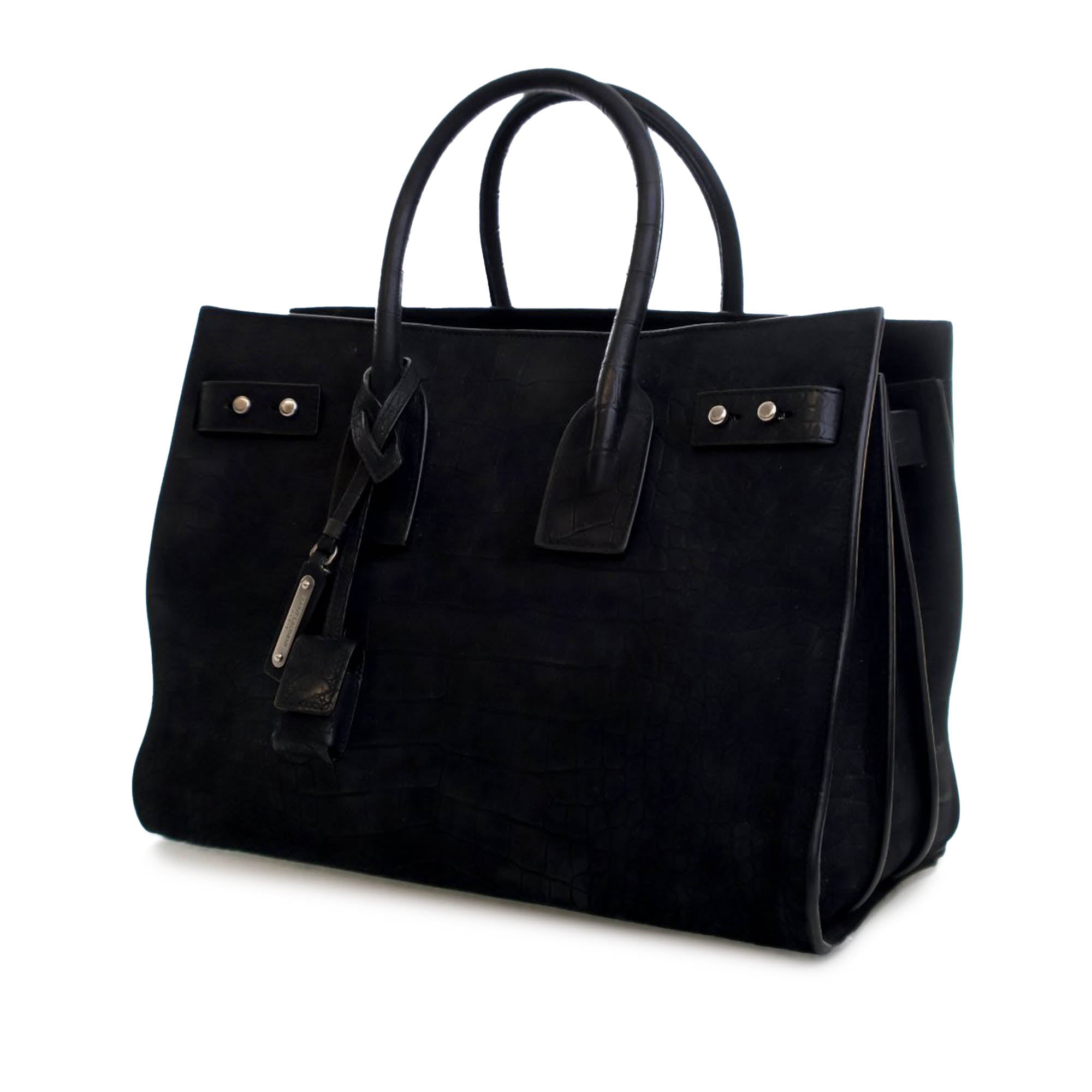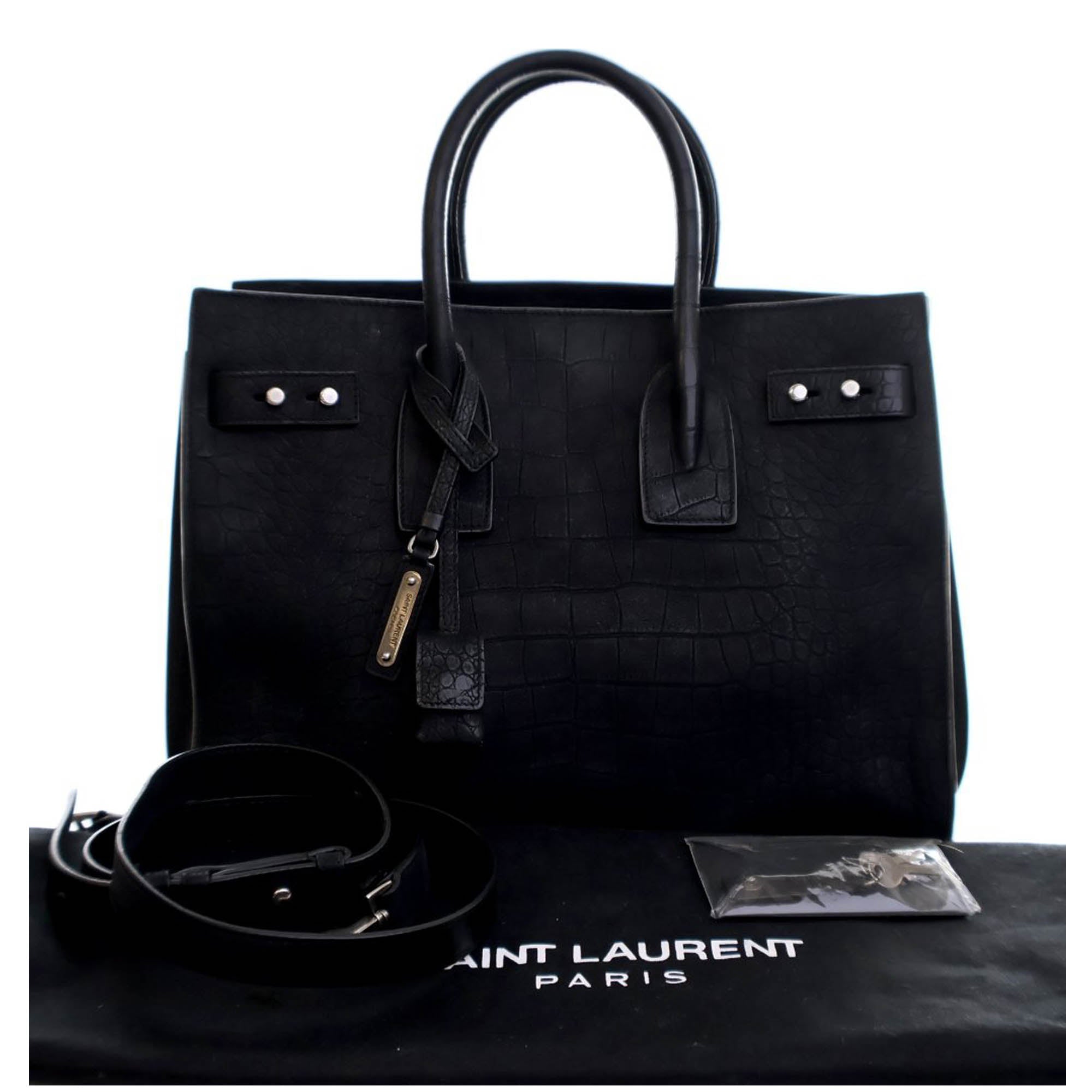 Saint Laurent Small Croc Embossed Suede Sac De Jour Satchel