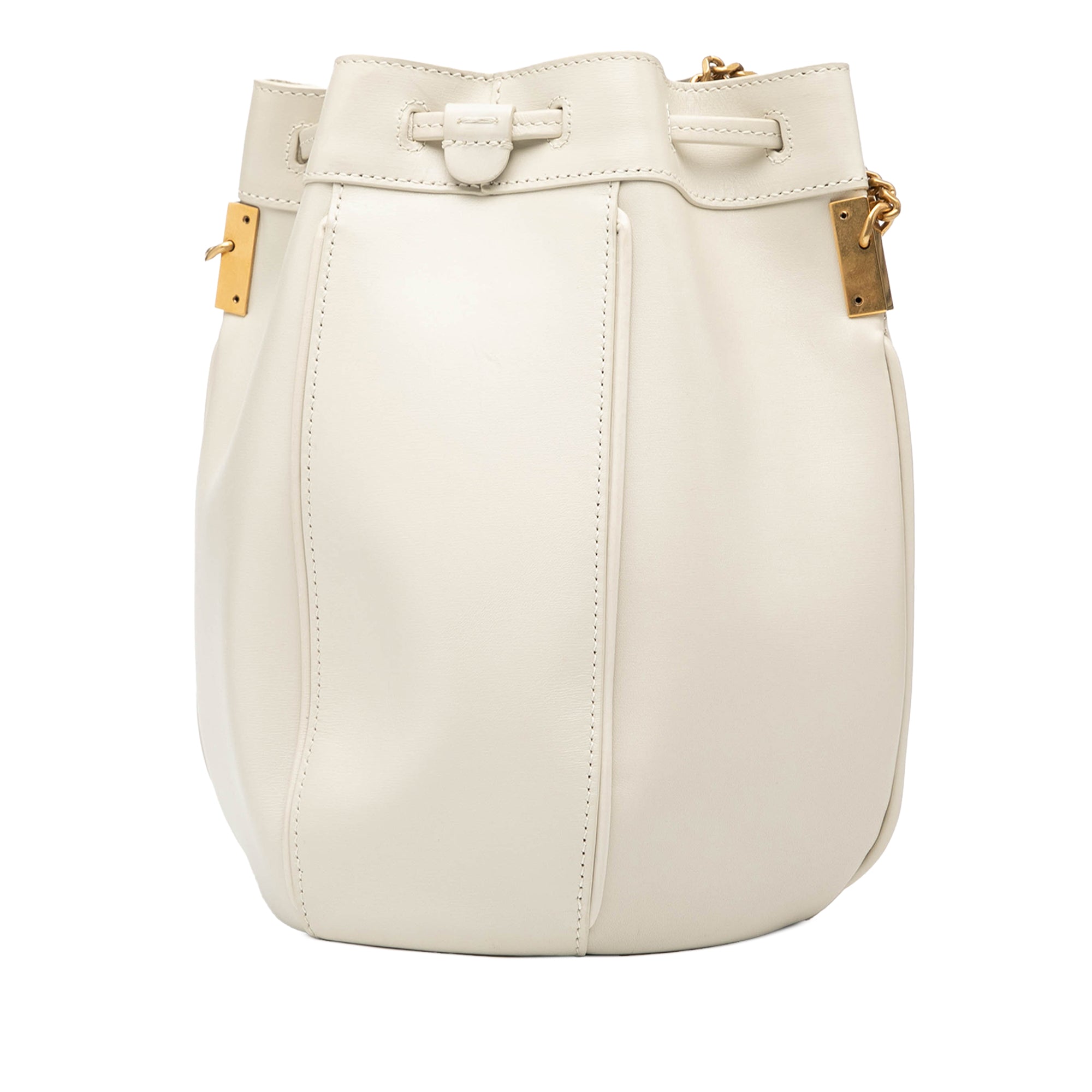 The Talitha features a leather body, gold toned chain strap, drawstring top, and an interior slip pocket. Retail Price: 1000.00