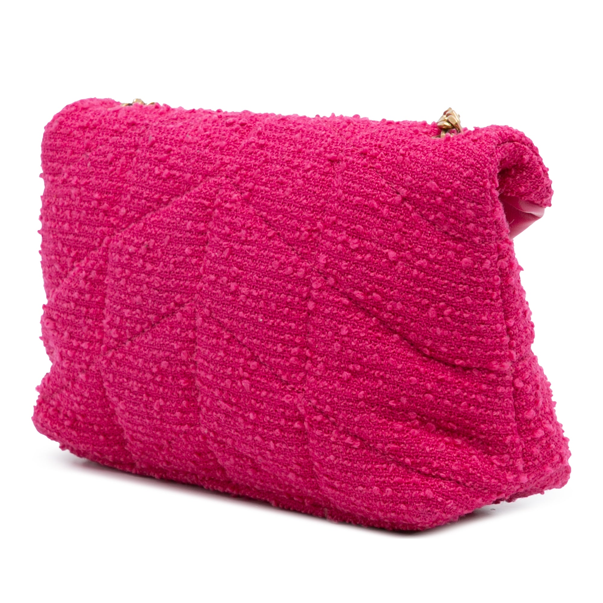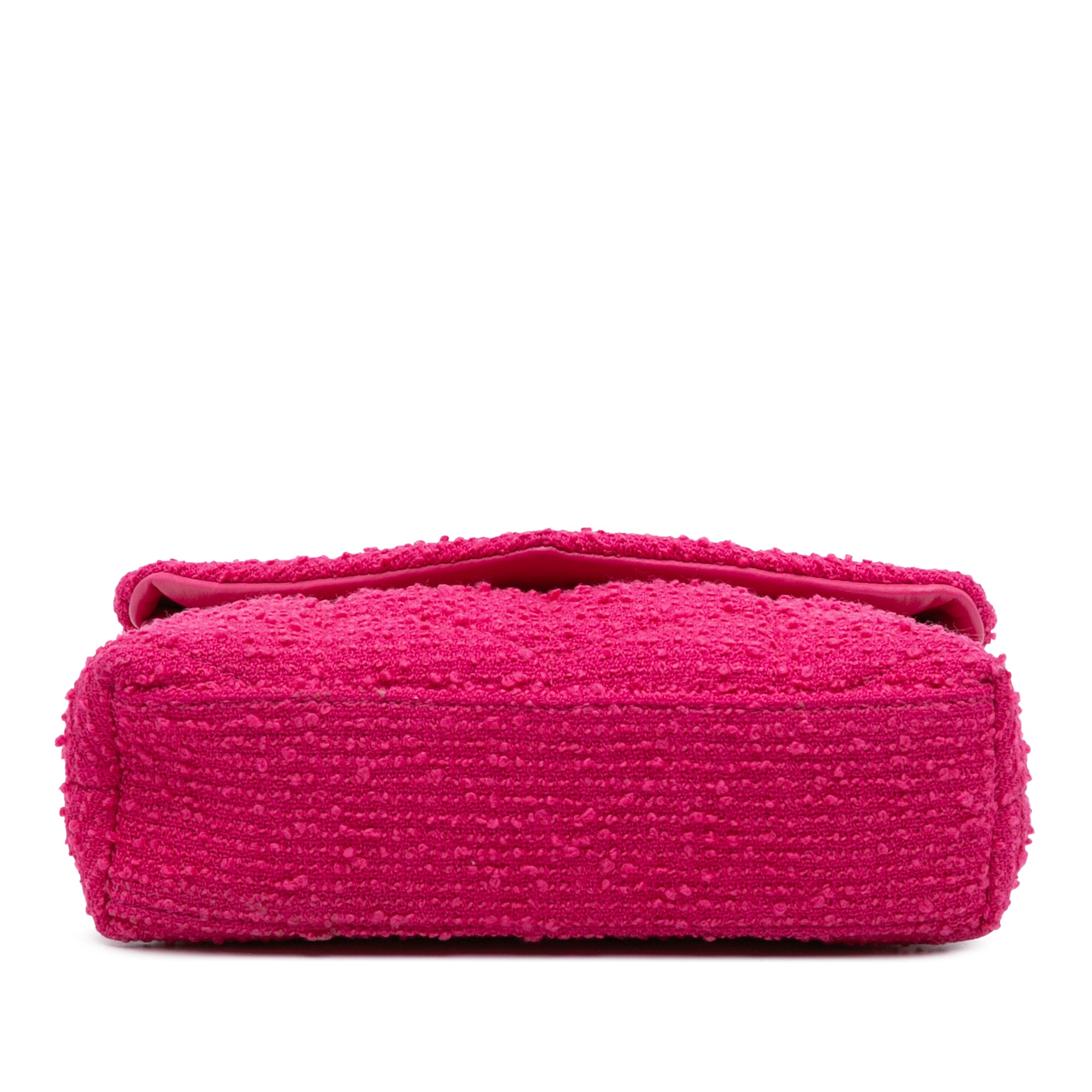 The LouLou Puffer bag features a tweed body, a curb chain shoulder strap with leather guard, a flap with magnetic snap closure, and interior zip and slip pockets. Retail Price: 1505.00