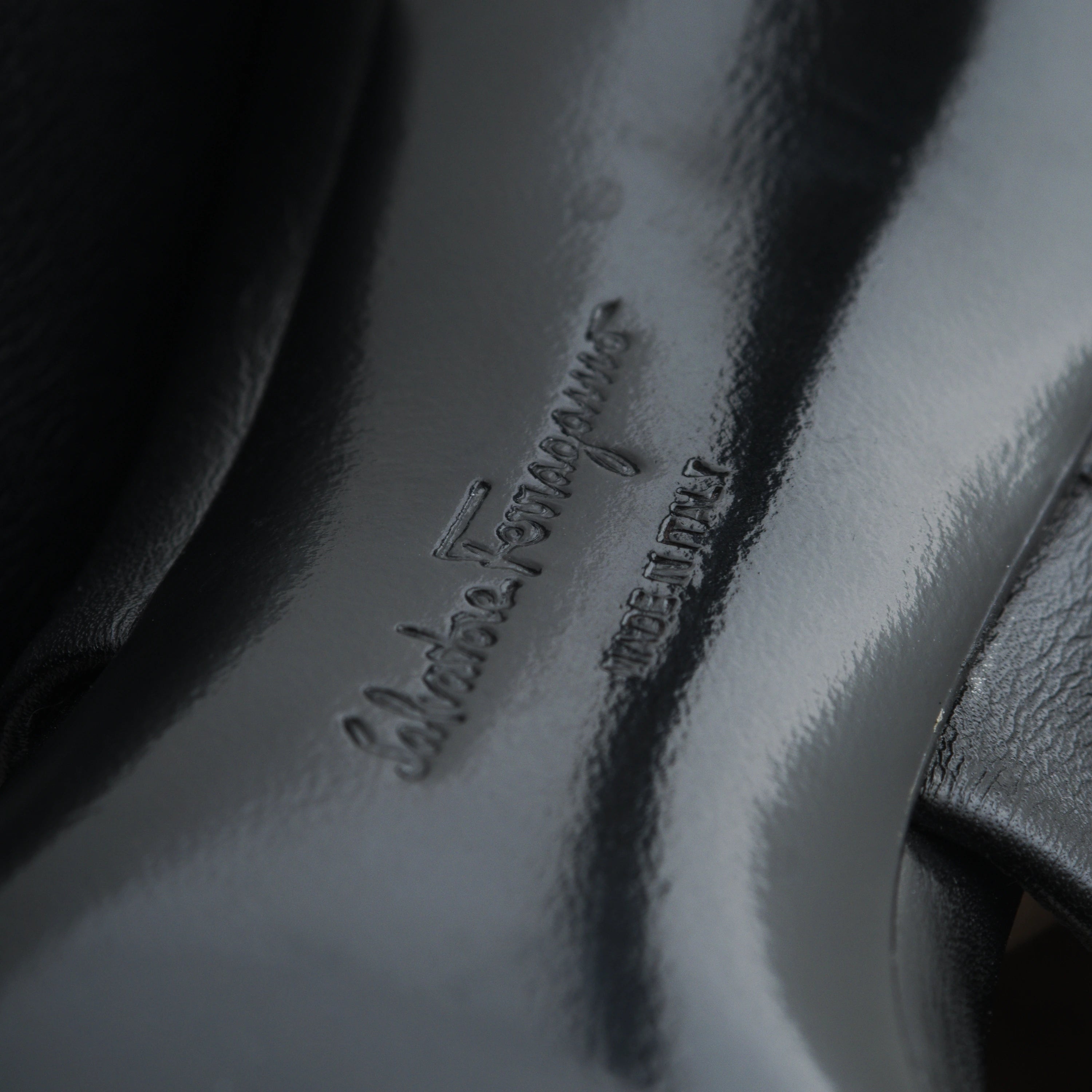 These black knee-high boots by Salvatore Ferragamo are crafted from premium leather and showcase the excellence of Italian craftsmanship. The design features refined cut-out details and elegant decorative eyelets, adding personality and a contemporary touch to the boot’s sleek silhouette.