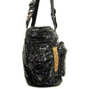 Sonia Rykiel contrasting black and gold sequins and front logo bag. Large zip pocket, three external patch pockets and one welt on the back. Two adjustable nylon handles.