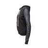 This Rick Owens sweatshirt embodies Avantgarde luxury and basic style, with a sleek zip fastening, leather sleeve, and drawstring hood. Stay comfortable and chic in this classic piece.