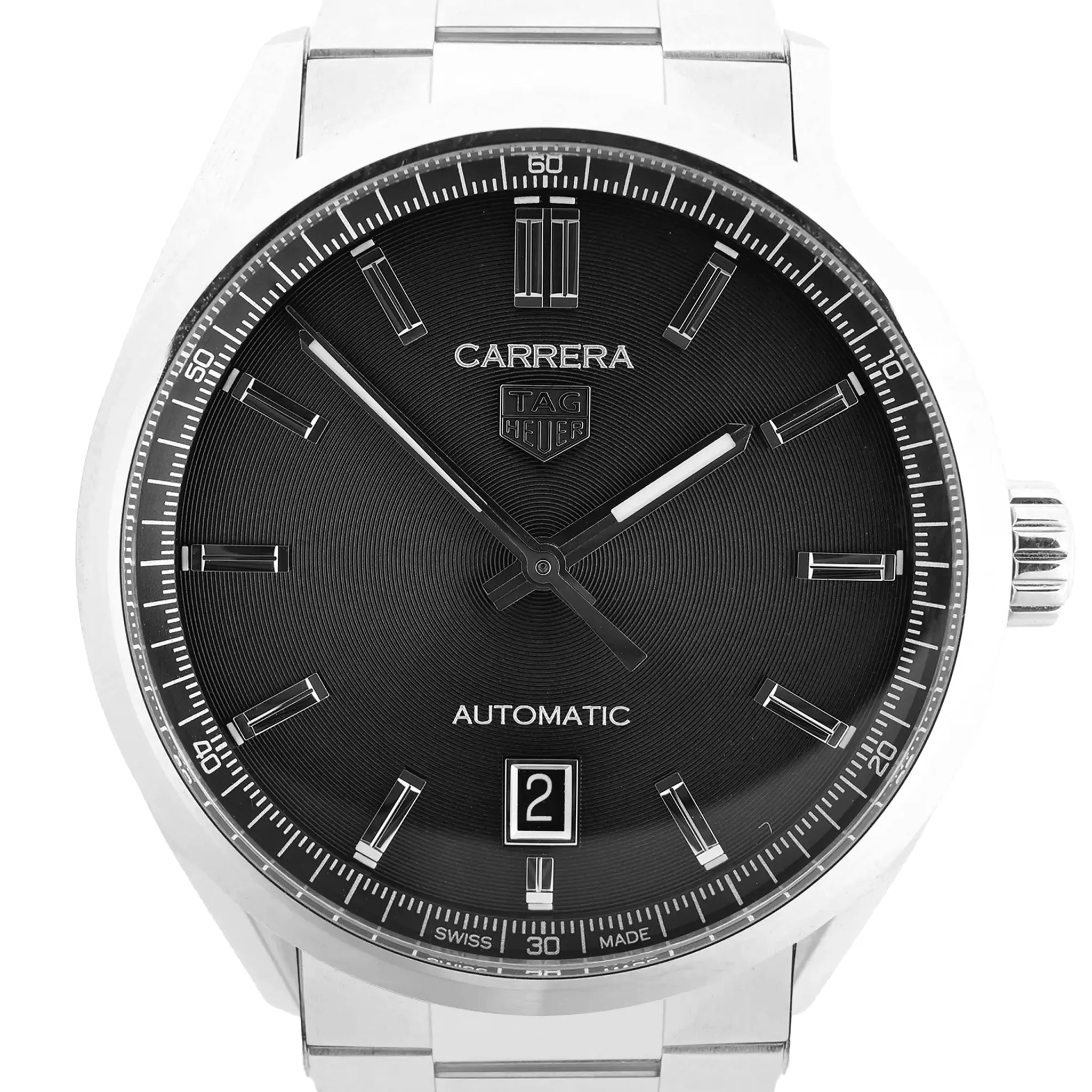 The TAG Heuer Carrera Calibre 5 WBN2110 is a refined stainless steel automatic watch featuring a sleek black dial, date display, and sporty elegance—perfect for everyday luxury and precision timekeeping.