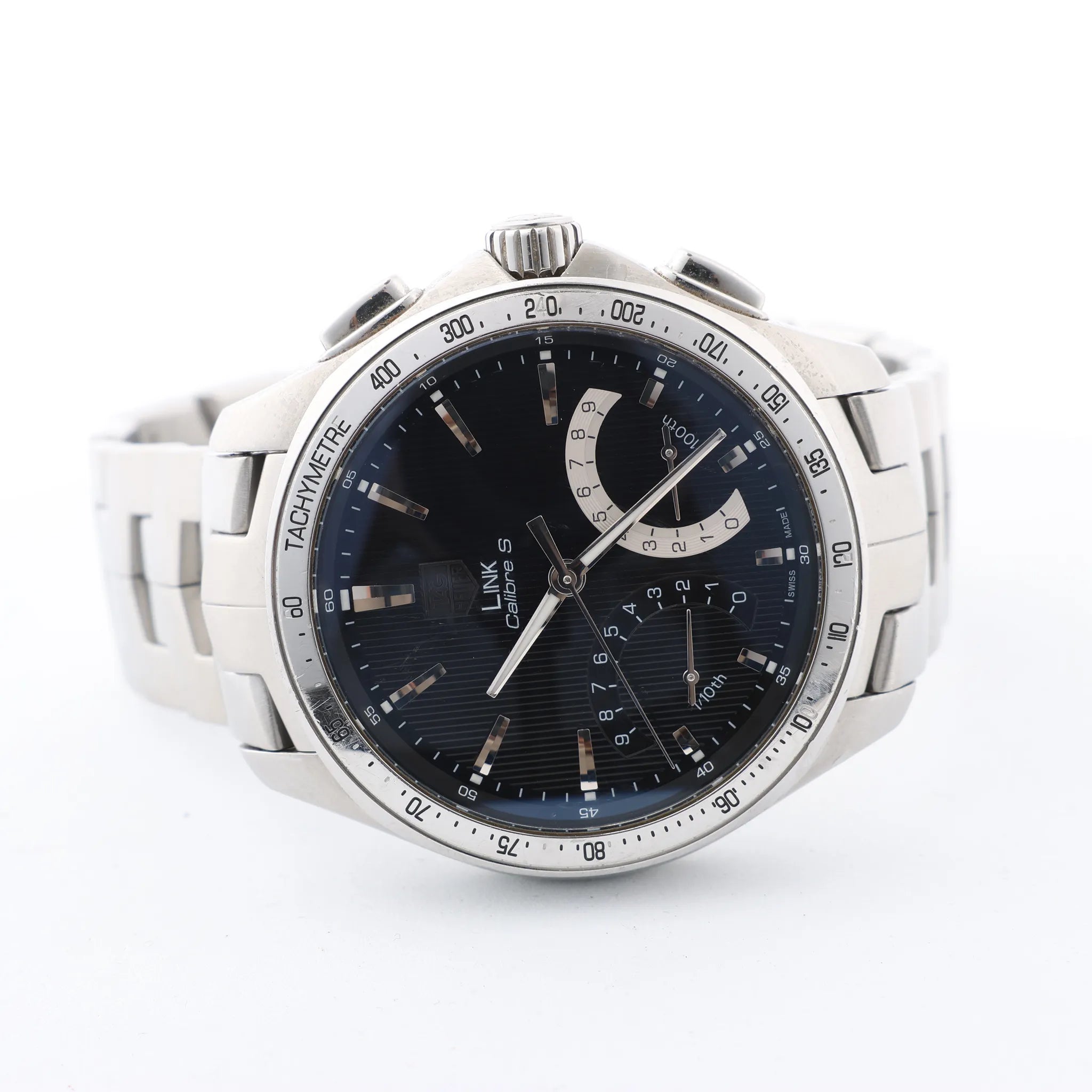 Brand: TAG HeuerModel: LinkReference: CAT7010Condition: ExcellentCondition Details: Light signs of use, including subtle surface marks barely visible to the eye. Please see photos for the exact condition.Dial Colour: BlackDial Material: Stainless steelStarp Colour: SilverStrap material: Stainless steelMovement: QuartzFace Diameter: 41 mm Approx. max circumference: 19 cm + extra linksComes With: Box, Papers, Cetificate, Extra links, Service card