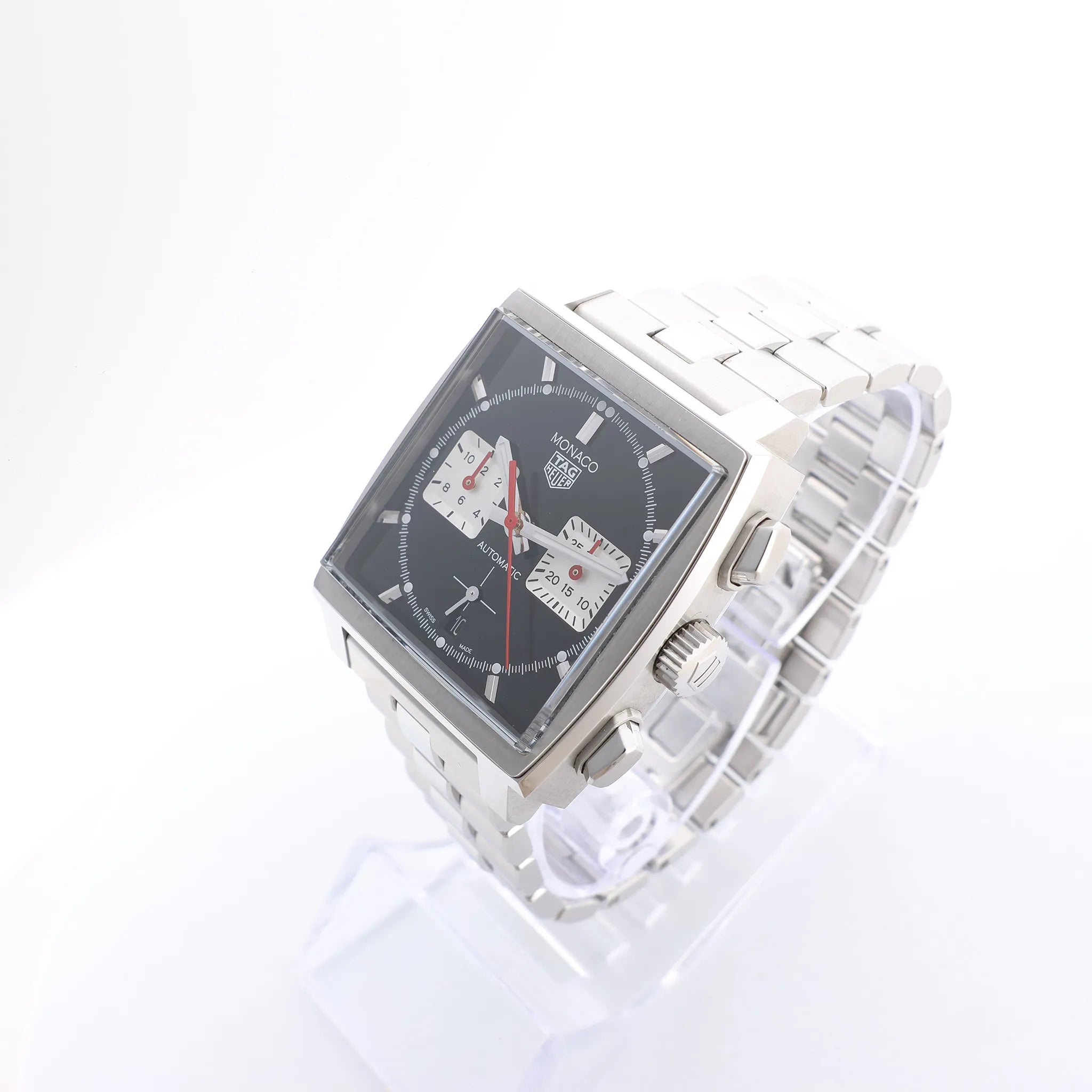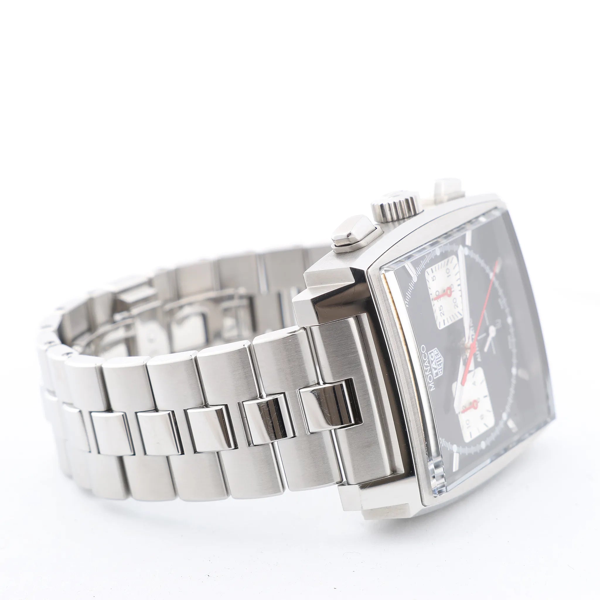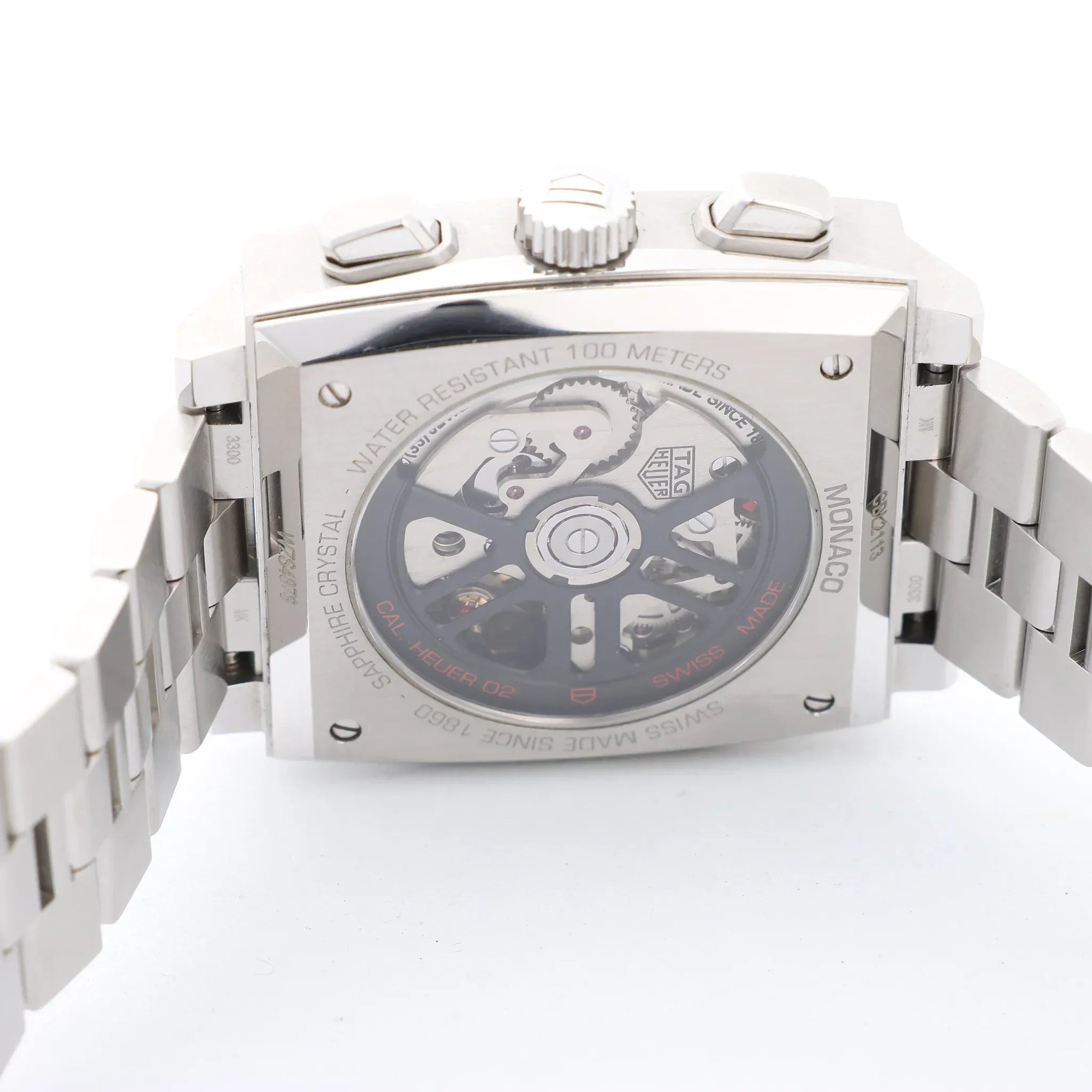 Brand: TAG HeuerModel: Monaco Calibre Heuer 02Reference: CBL2113.BA0644Condition: ExcellentCondition Details: Excellent overall condition with almost no visible signs of use. Barely noticeable hairline marks may be present, but they are not visible to the naked eye. Please see photos for details. Dial Colour: BlackDial Material: Stainless steelsStarp Colour: SilverStrap material: Stainless steelsMovement: AutomaticFace Diameter: 39 x 39 mm Approx. max circumference: 20.5 cm + extra linksComes With: Box, Certificate, Brand booklet, Extra links, Service card