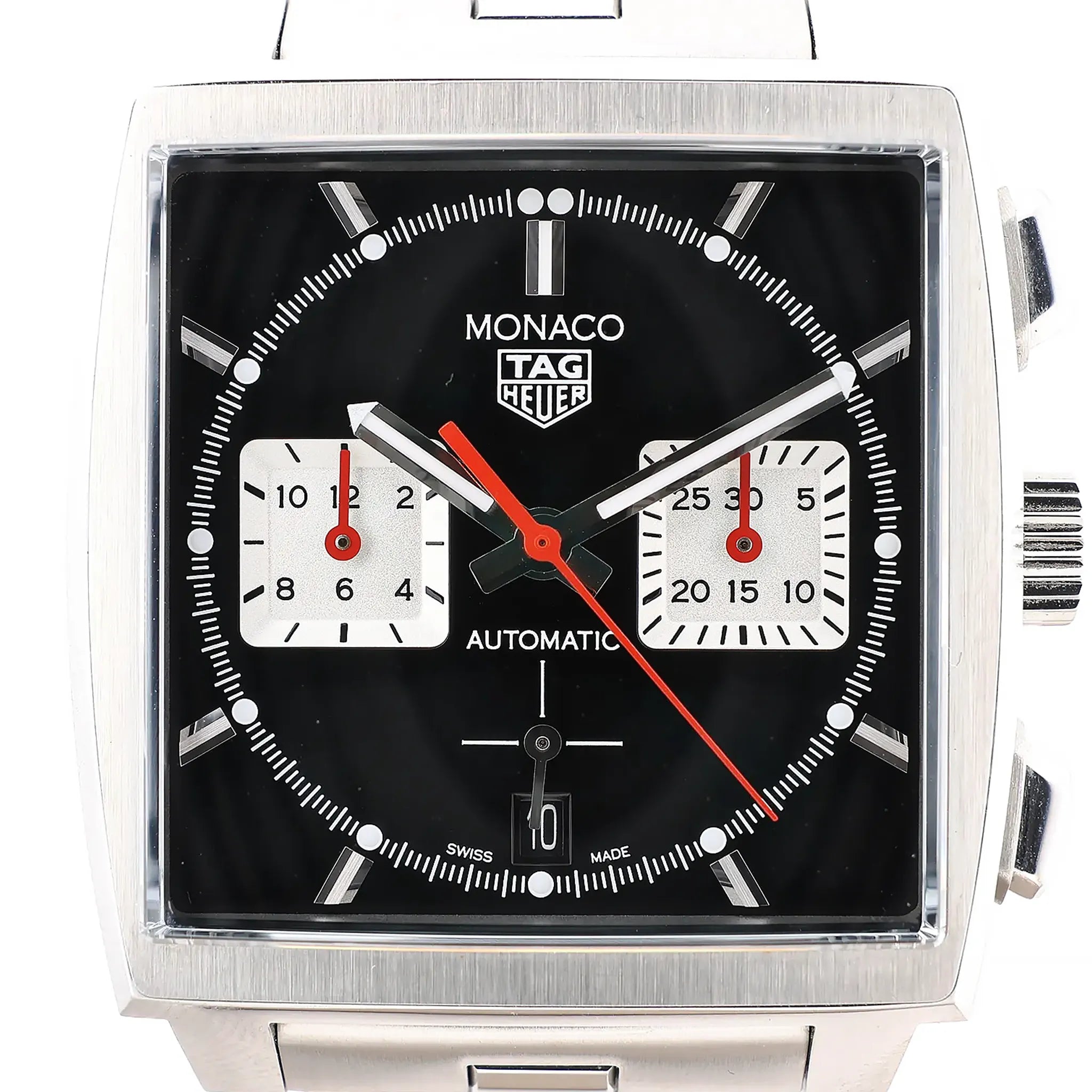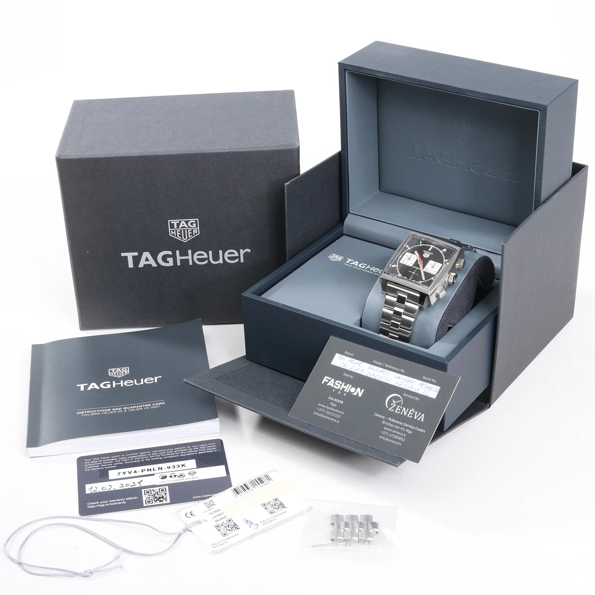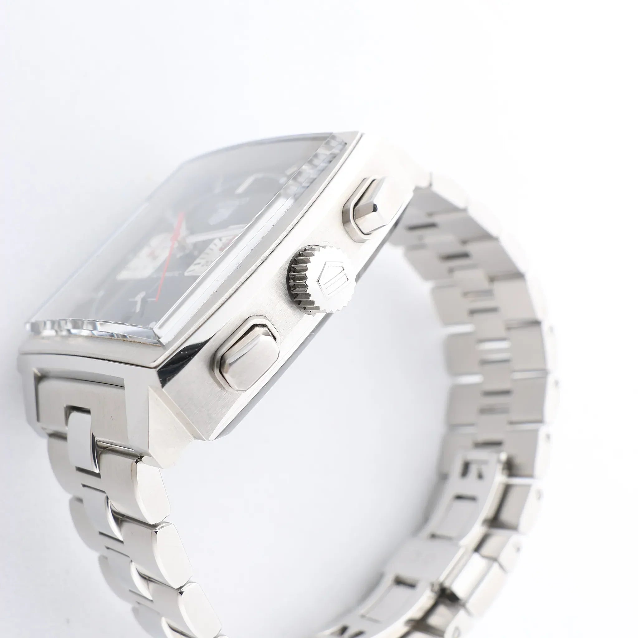 Brand: TAG HeuerModel: Monaco Calibre Heuer 02Reference: CBL2113.BA0644Condition: ExcellentCondition Details: Excellent overall condition with almost no visible signs of use. Barely noticeable hairline marks may be present, but they are not visible to the naked eye. Please see photos for details. Dial Colour: BlackDial Material: Stainless steelsStarp Colour: SilverStrap material: Stainless steelsMovement: AutomaticFace Diameter: 39 x 39 mm Approx. max circumference: 20.5 cm + extra linksComes With: Box, Certificate, Brand booklet, Extra links, Service card