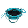 Crafted with distressed leather, the Balenciaga Teal City Bag is a classic that defines timeless beauty. Accented by metallic studs and hanging tassels on the zippers, it is a piece that comfortably stores all your important essentials.