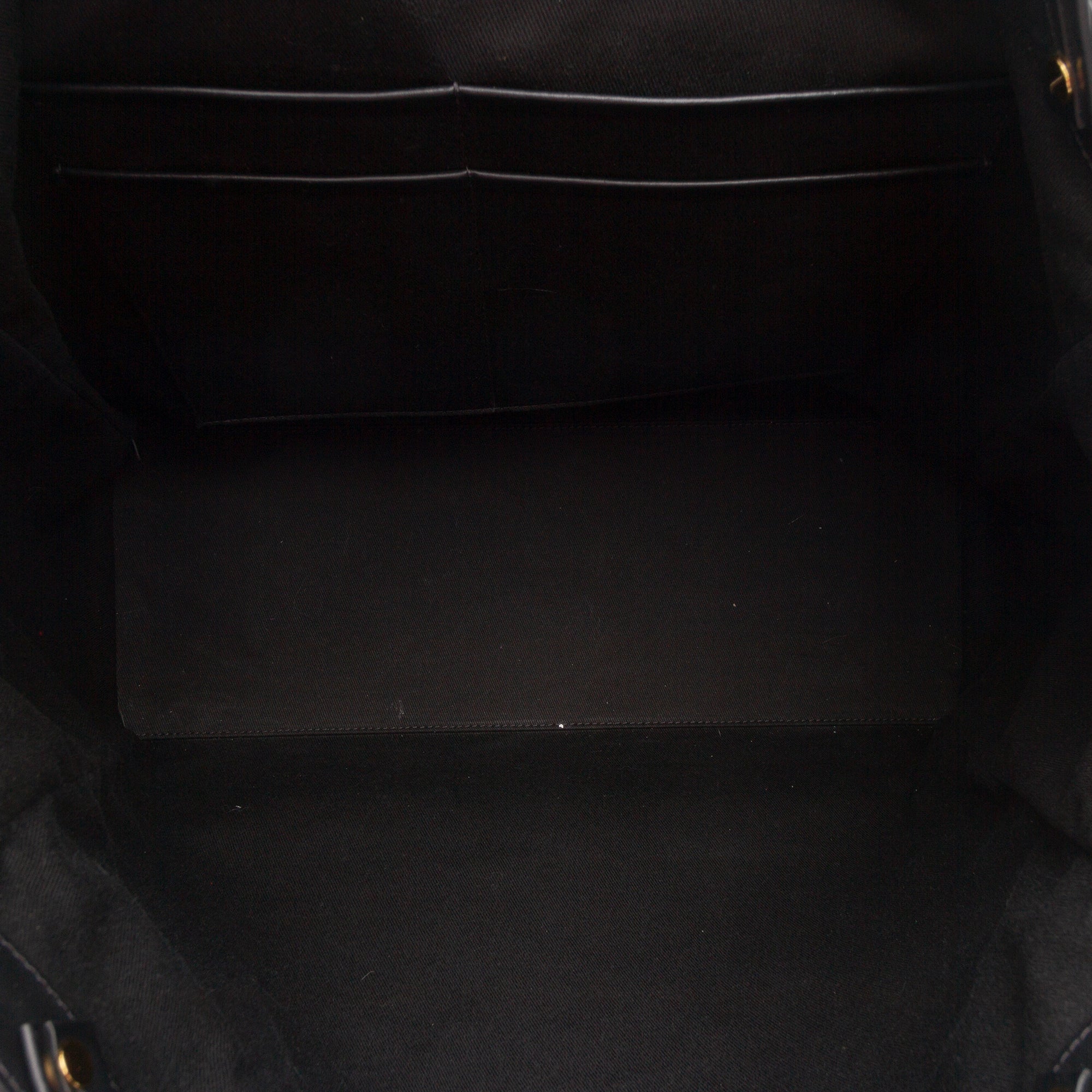 The T Screw Tote features a canvas body with leather trim, flat leather top handles, flat straps, an open top, and interior slip pockets. Retail Price: 1057.00