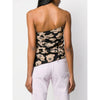 90s Ungaro black silk strapless top with beige flowers pattern. Lateral gathering and zip with concealed hook fastening.