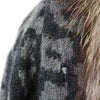 Valentino dark gray cashmere with light gray spotted pattern cardigan with edges finished in fox fur. Open model with long sleeves, padded shoulders and front patch pockets.