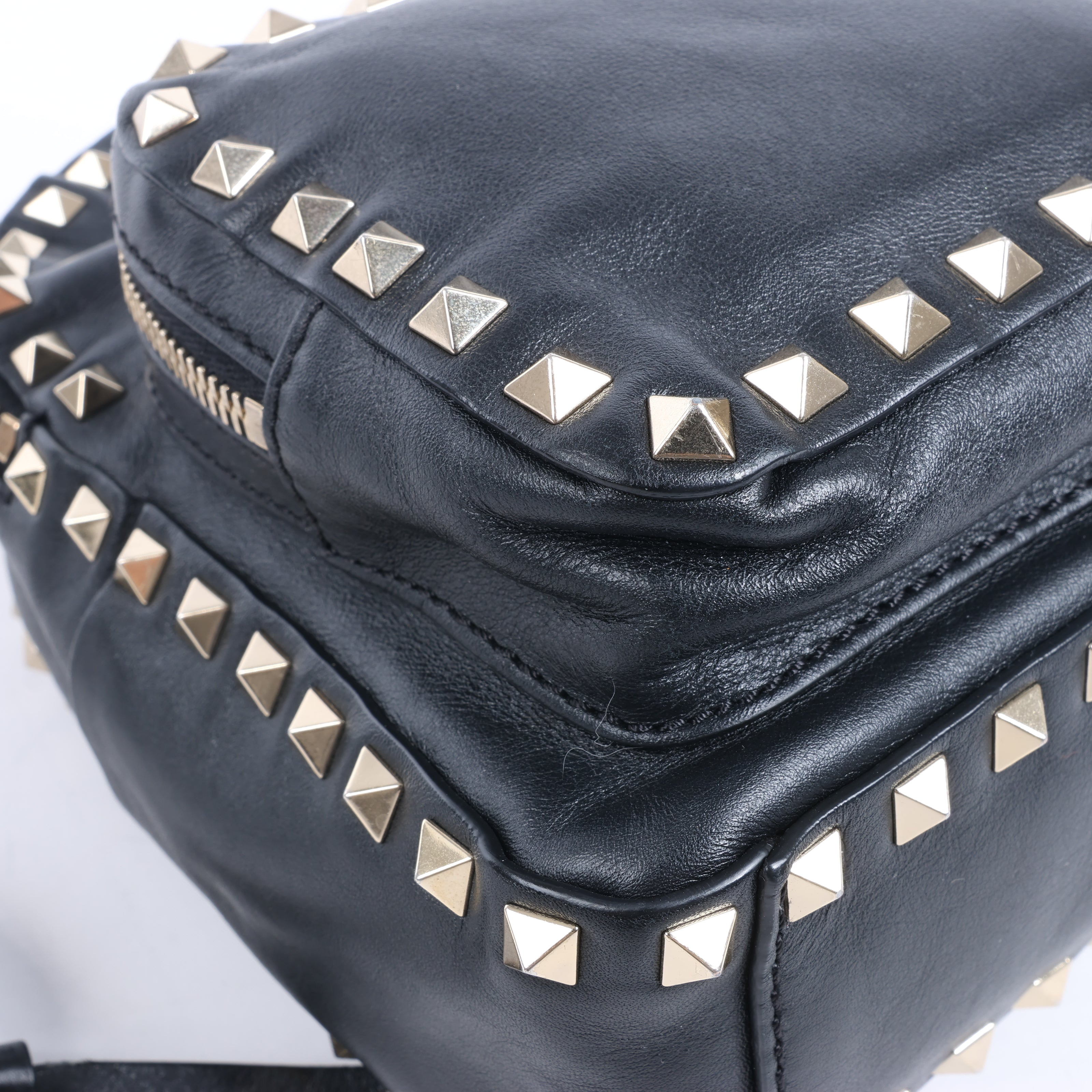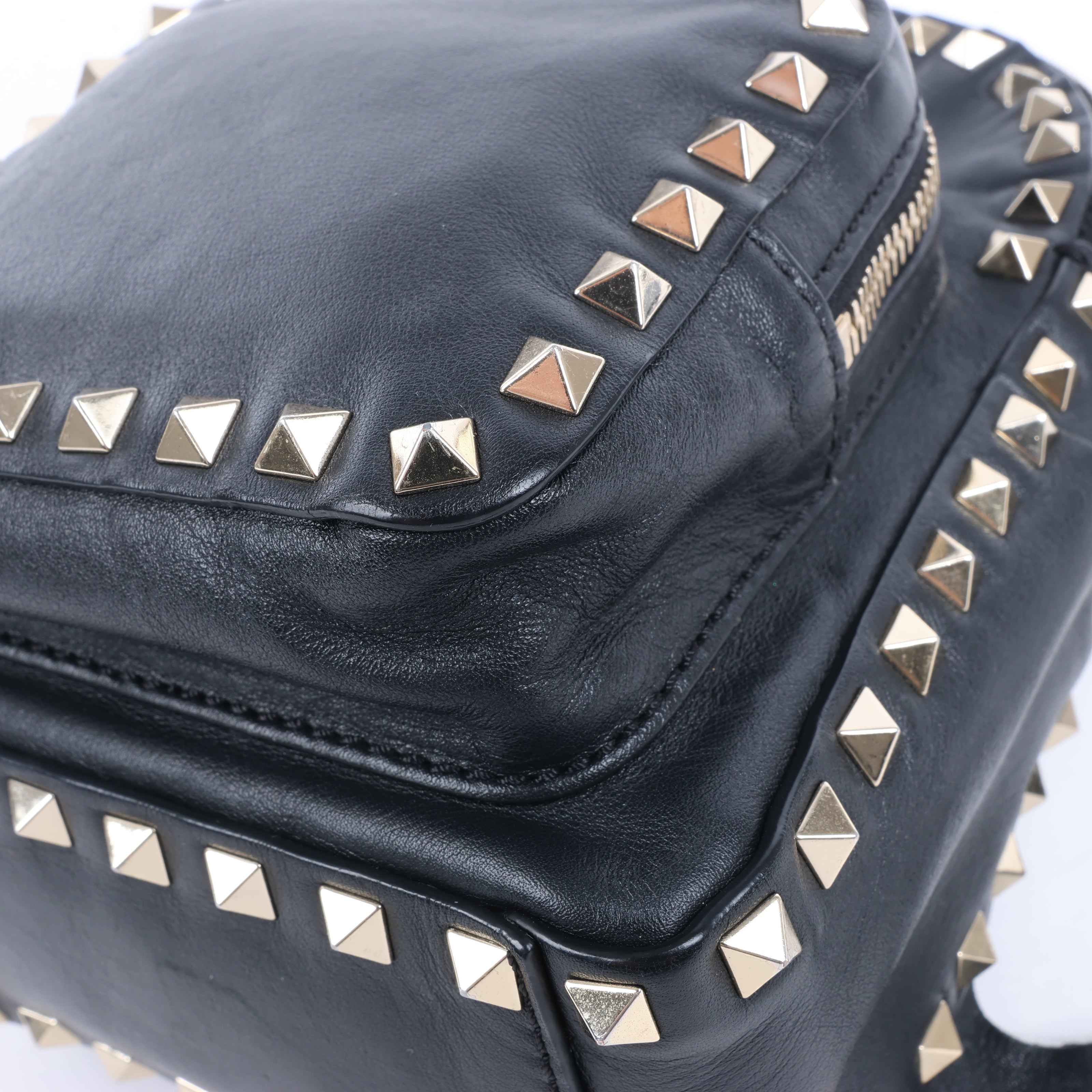 The Valentino Garavani Rockstud Spike Leather 2Way Backpack in Pink offers a bold, stylish statement. This quilted pink leather bag features signature gold-tone studs, adjustable straps, and a top handle for versatile carrying options, perfect for any fashion-forward look.