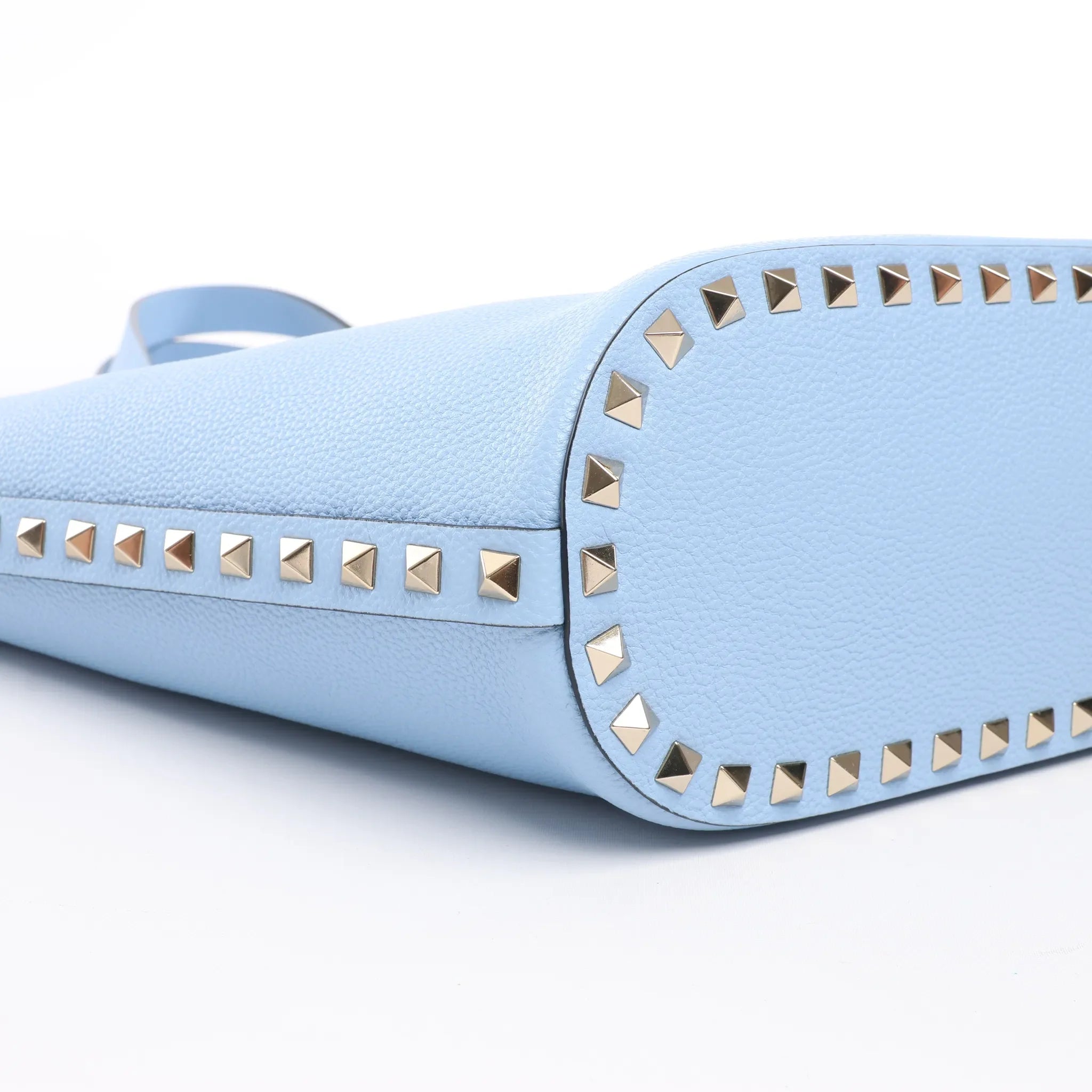 Brand: Valentino GaravaniModel: RockstudSize: -Width: 25 cmHeight: 20 cm Exterior Condition: ExcellentInterior Condition: ExcellentCondition Details: The exterior leather remains clean and beautiful. The handles are in great condition. The hardware is bright and shiny. The interior lining is clean and in excellent condition. Top width is 40 cm. Overall bag looks like NEW!Colour: BlueInterior Colour: BlueHardware Colour: GoldMaterial: LeatherComes With: Brand tag, papers, extra studs
