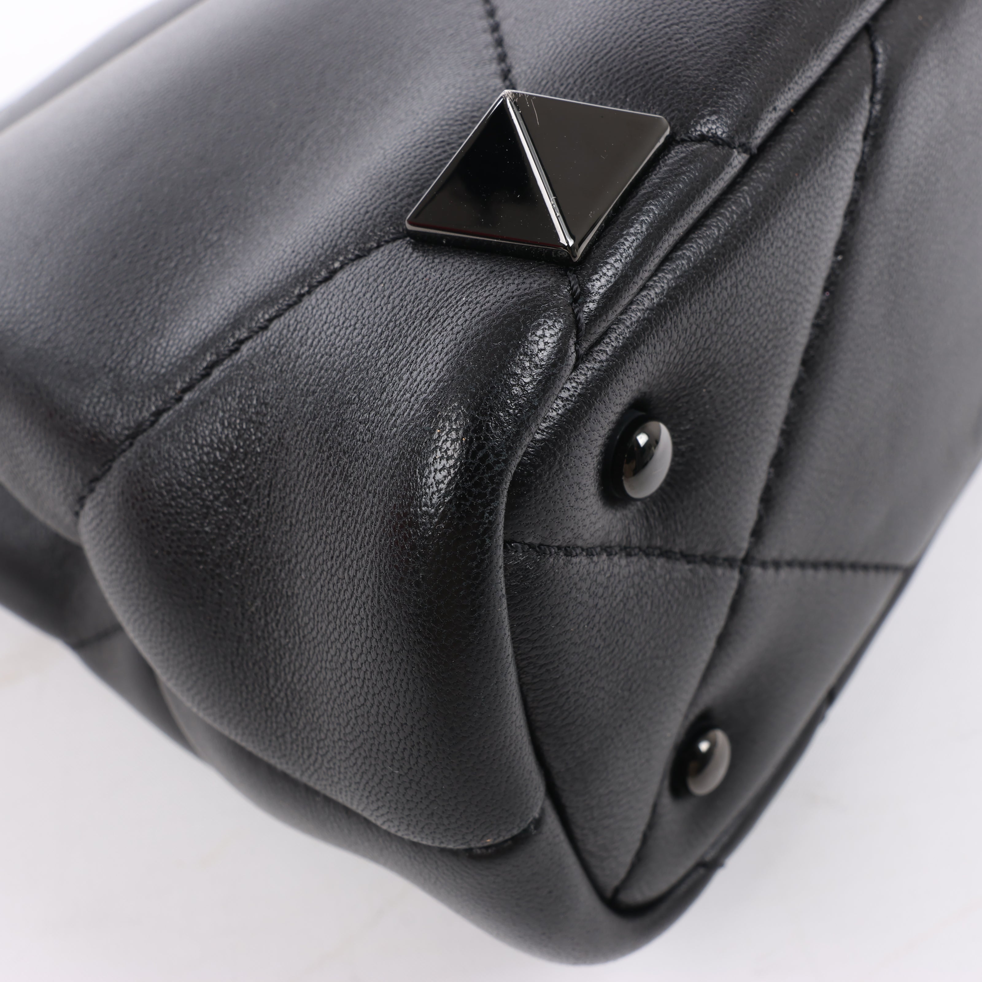 Valentino Garavani Roman Studs bag in black leather features bold pyramid studs, sleek gunmetal hardware, and a versatile 3-way design—carry it by top handle, chain strap, or shoulder strap for edgy elegance on any occasion.