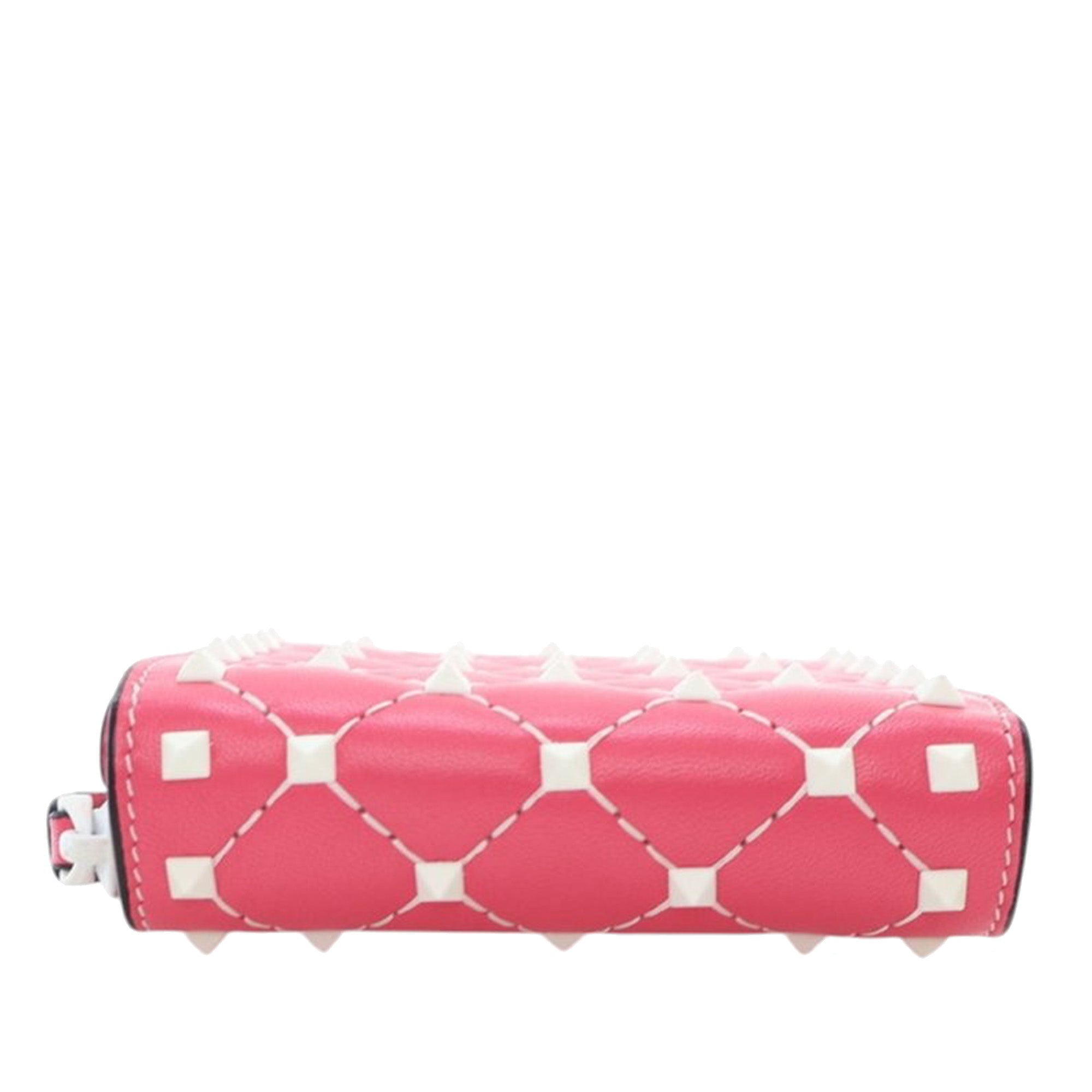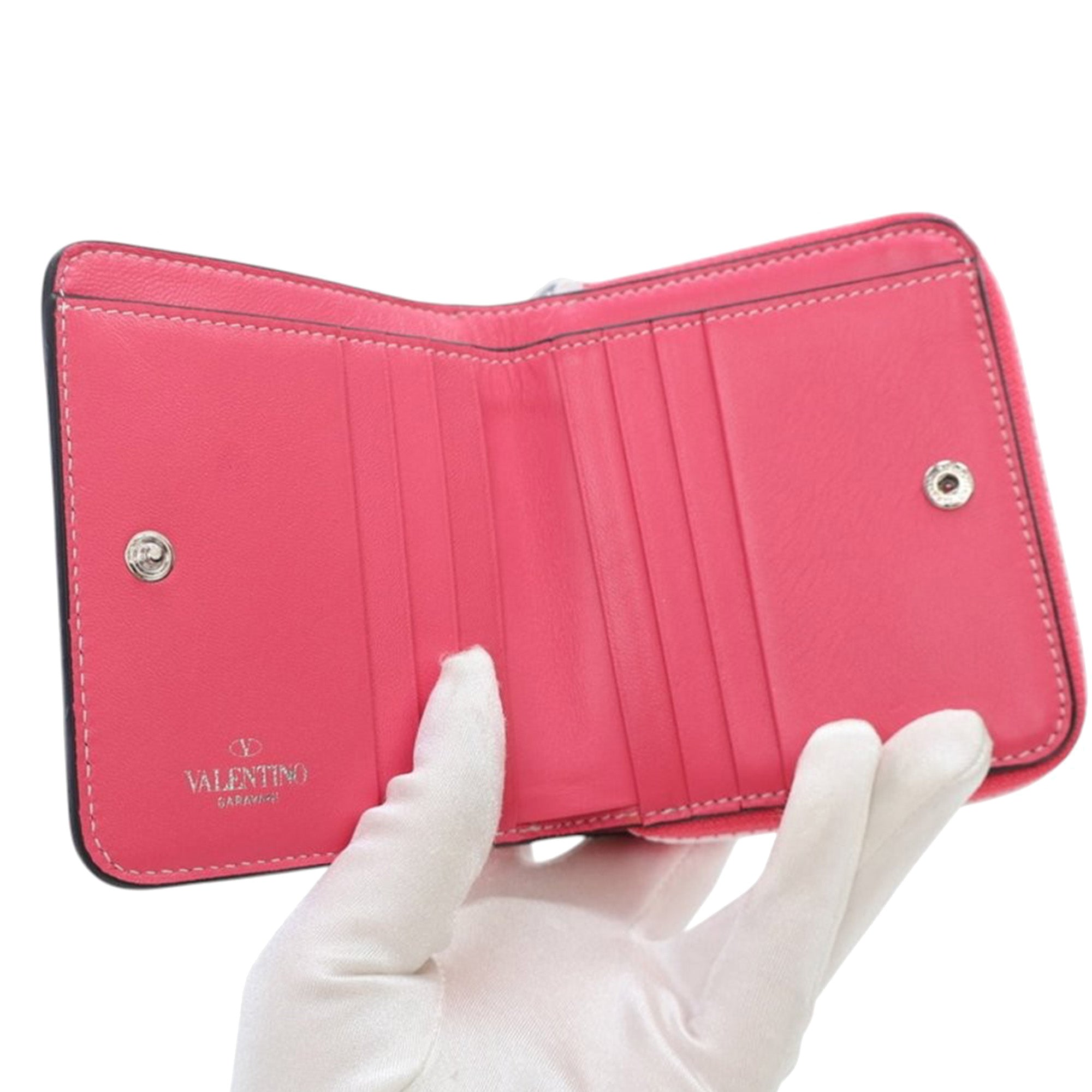 Valentino Lambskin Free Rockstud Spike Compact Zip Around Wallet