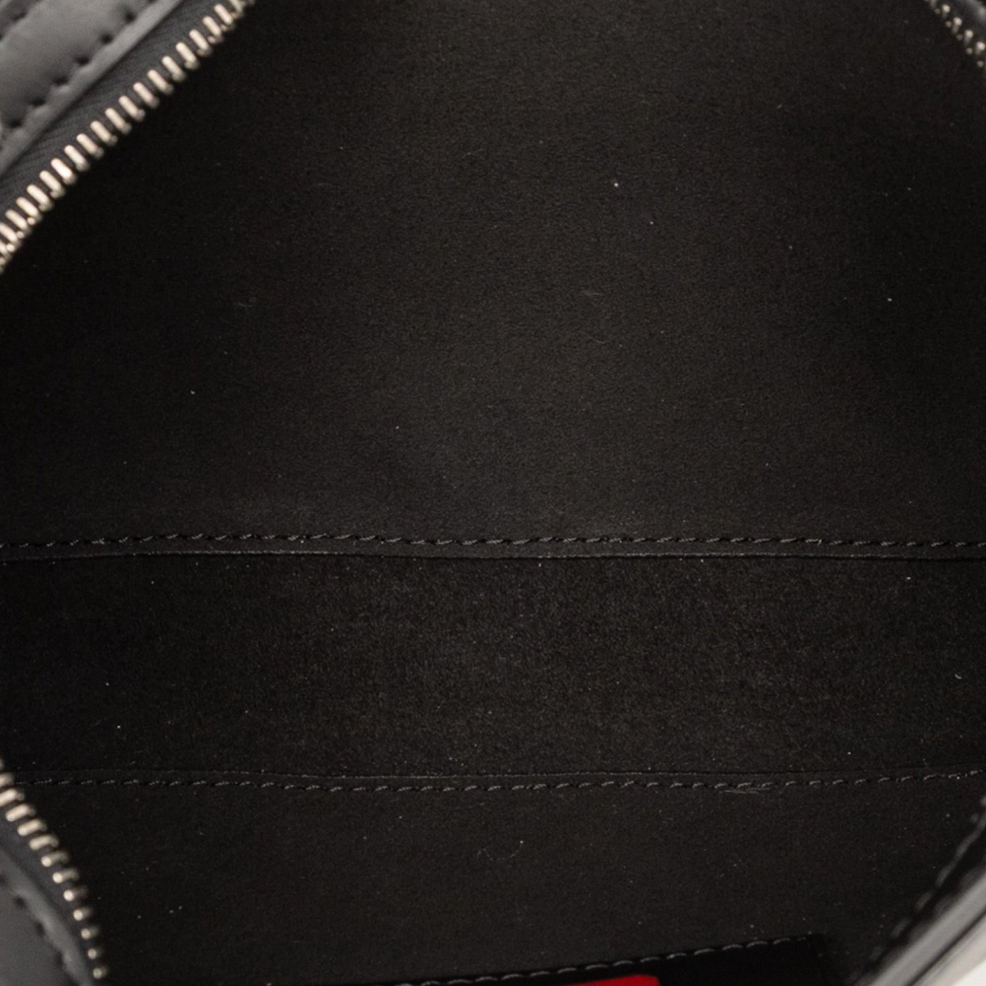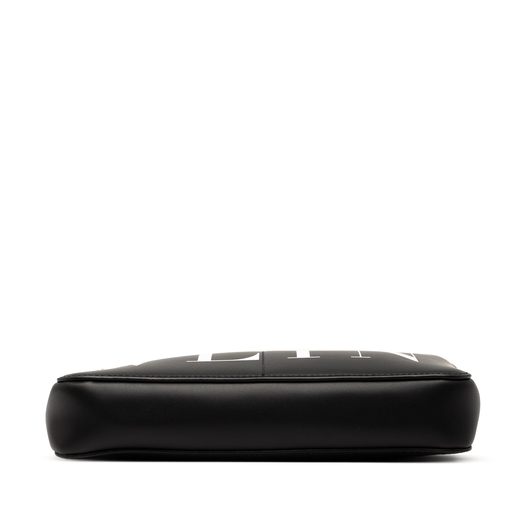 This crossbody features a printed leather body, a detachable flat leather strap, a top zip closure, and exterior front slip pockets. Retail Price: 975.00