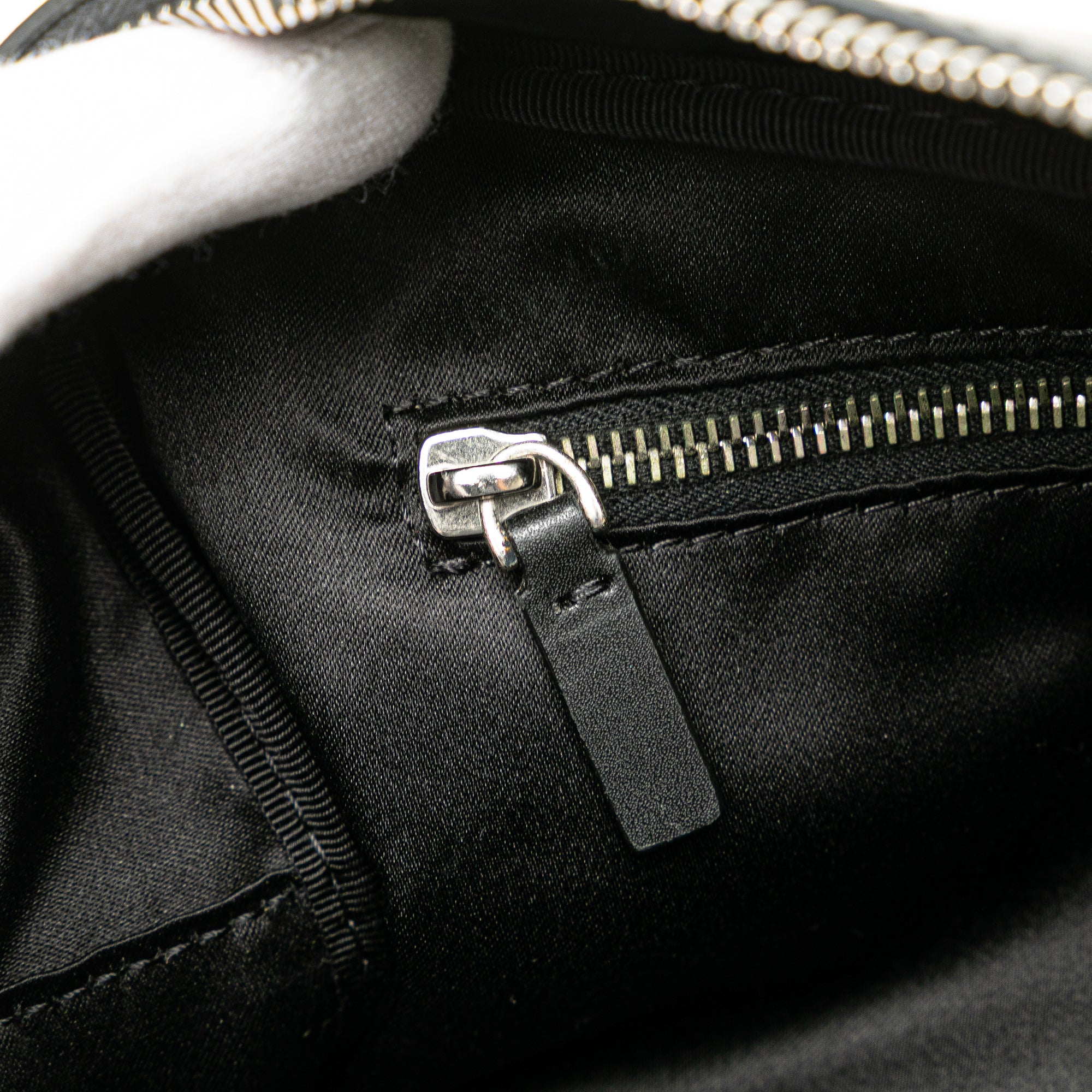 This pouch features a leather body, a top zip closure, and an interior zip pocket. Retail Price: 645.00