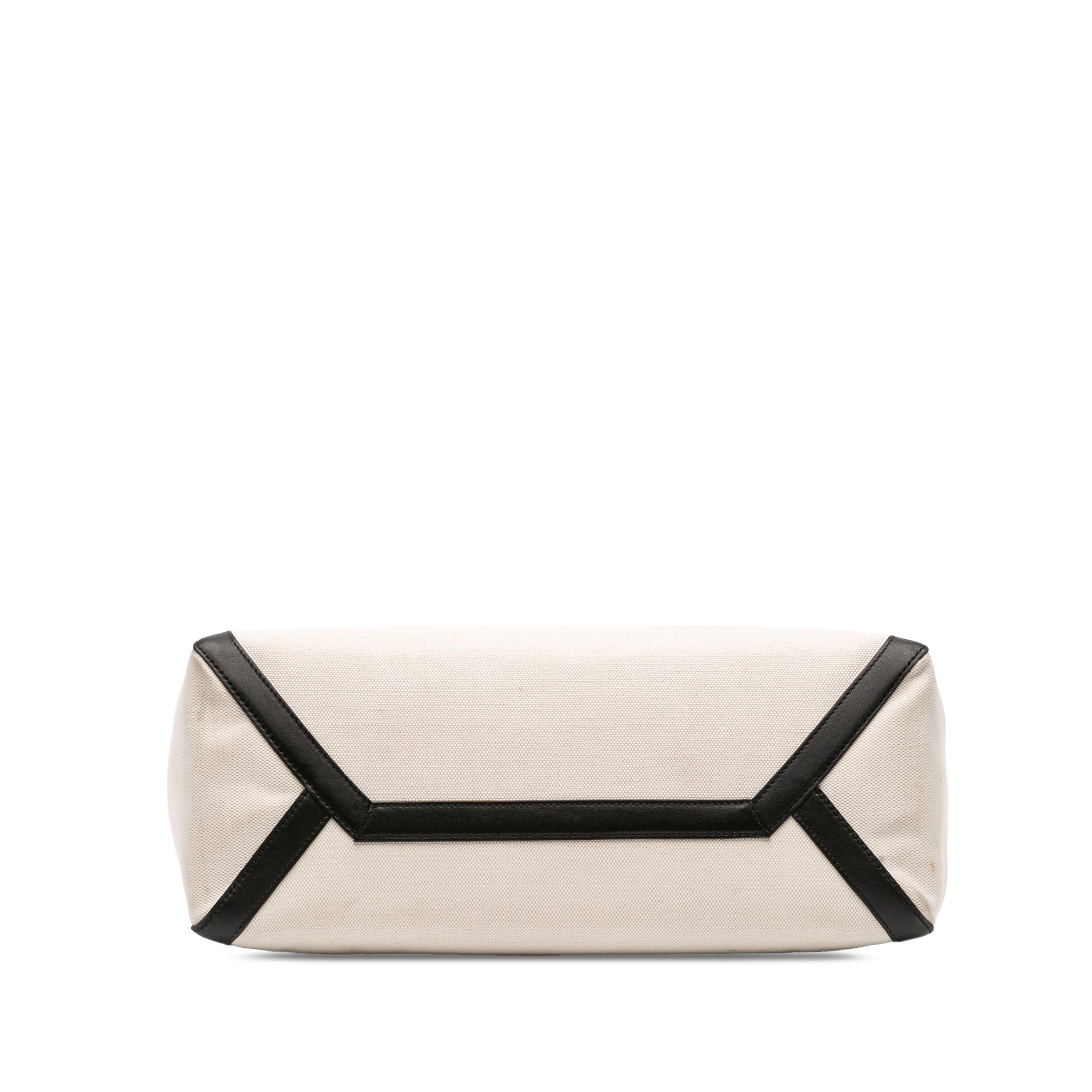 This satchel features a canvas body with leather trim and studs detail, flat leather handles, a top magnetic closure, and interior slip pockets. Retail Price: 1175.00