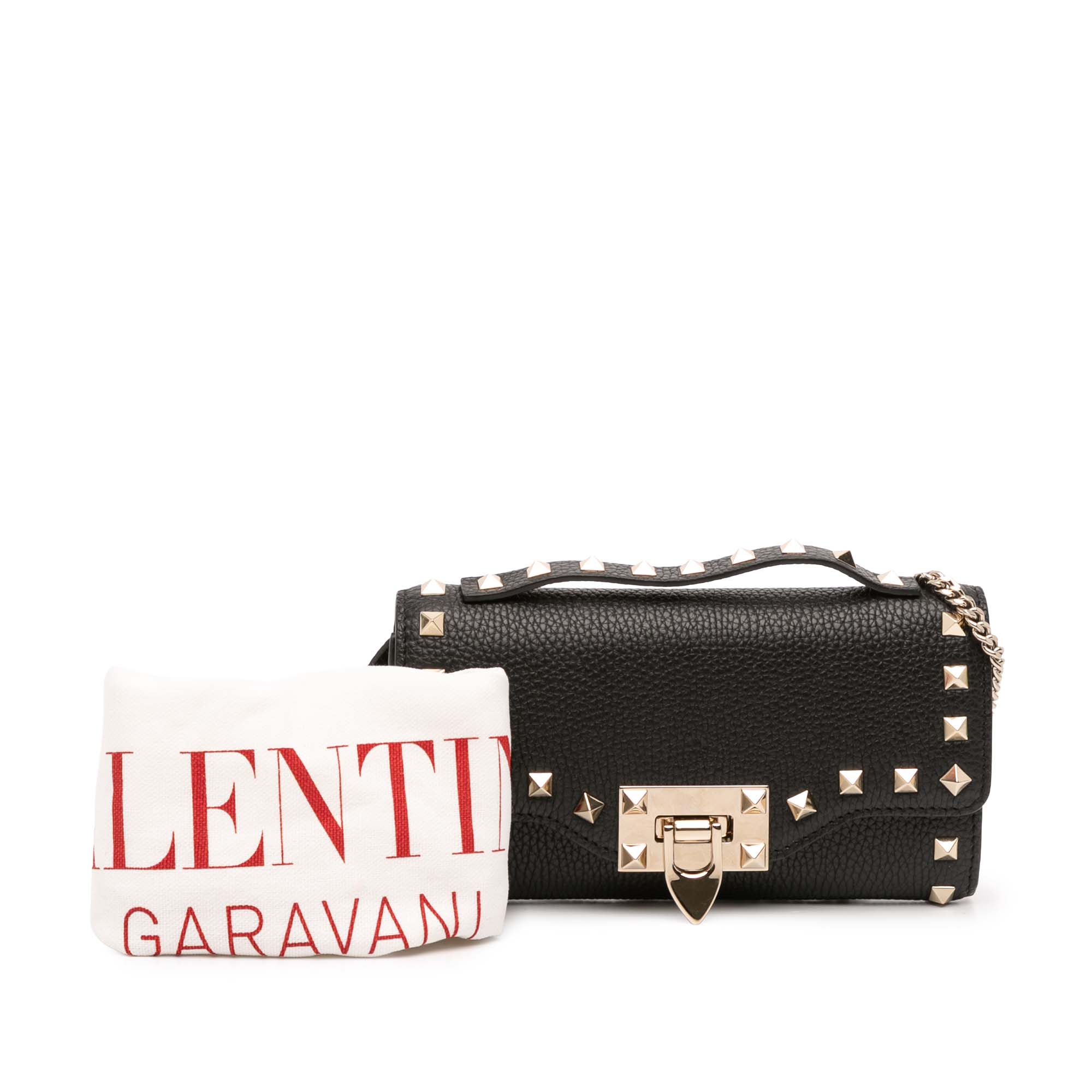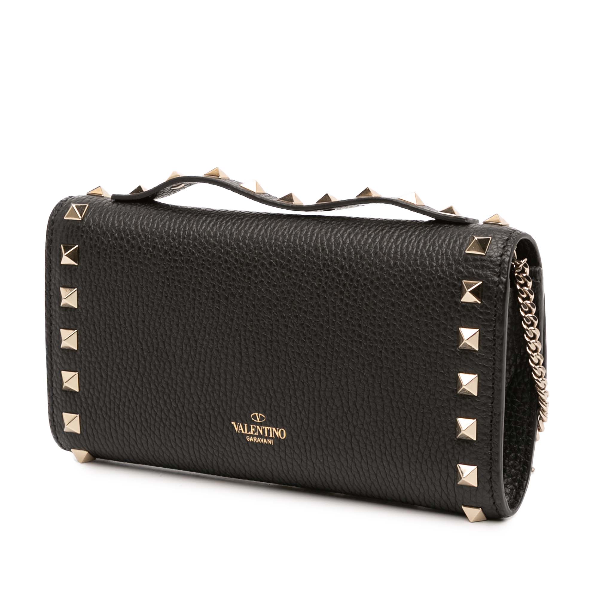 Valentino Pebbled Calfskin Rockstud Flip Lock Wallet On Chain