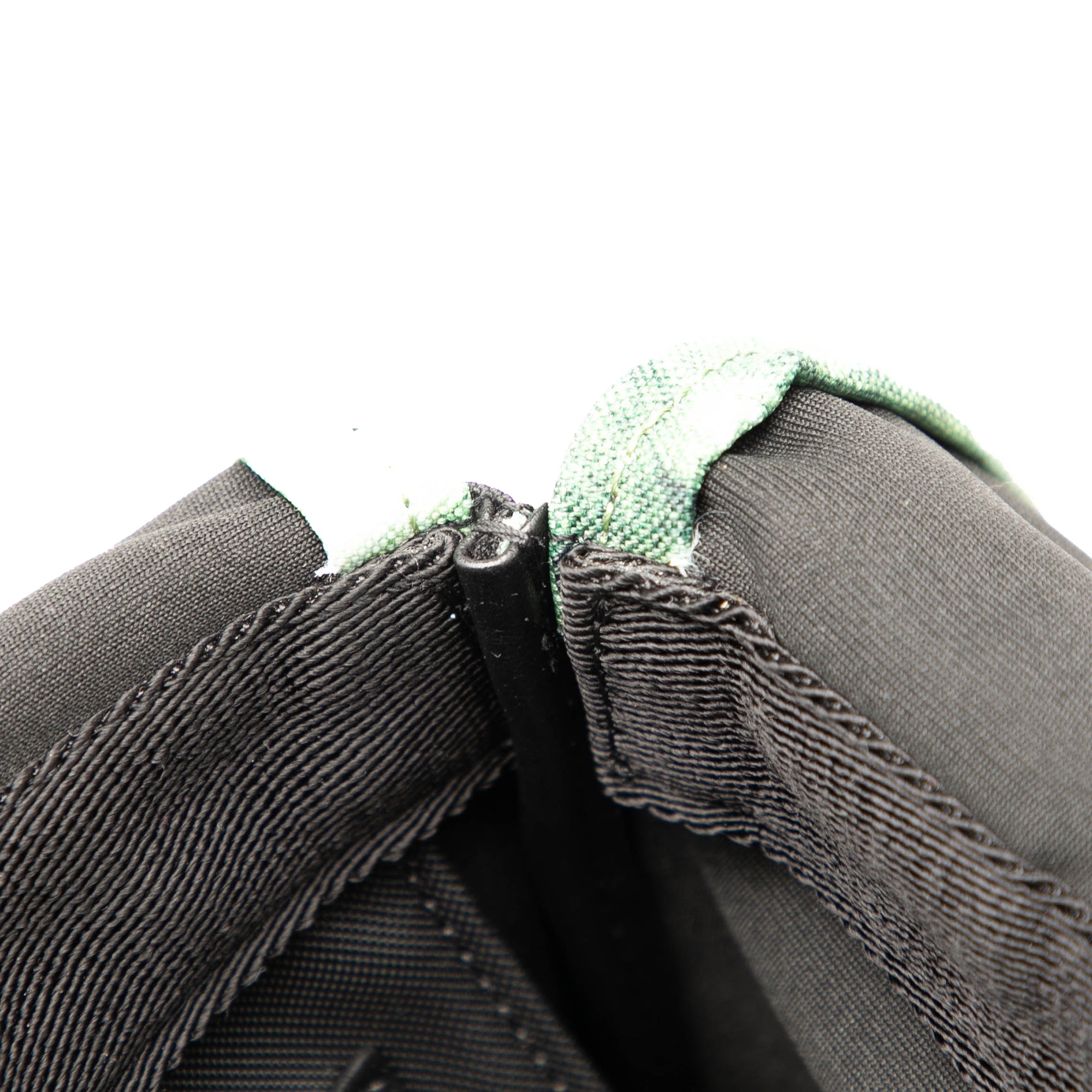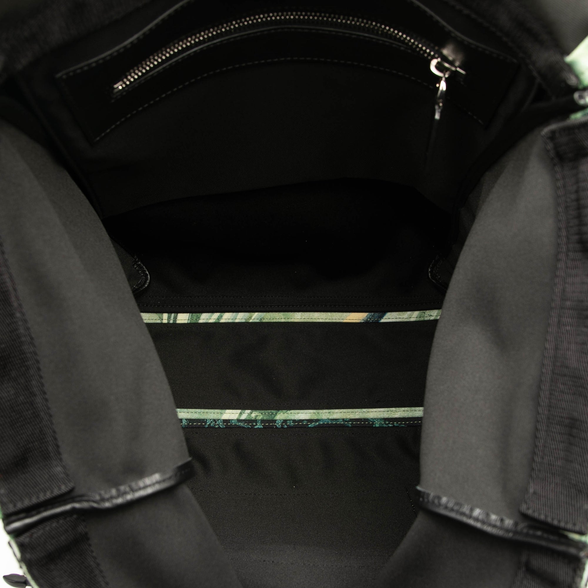 This backpack features a printed nylon body, a flat top handle, adjustable back straps, a top flap with buckle closures, exterior zip pockets, and an interior zip pocket. Retail Price: 1455.00