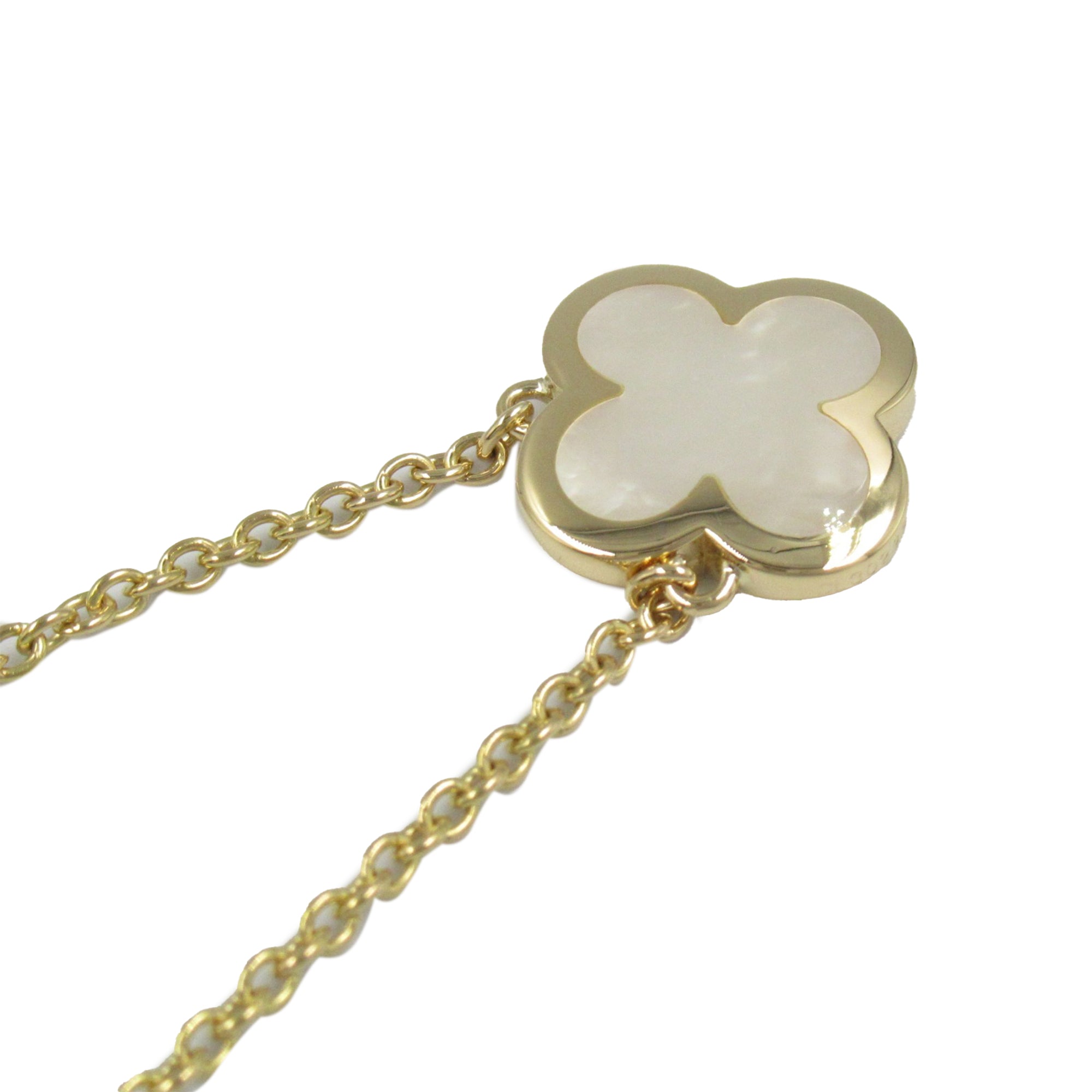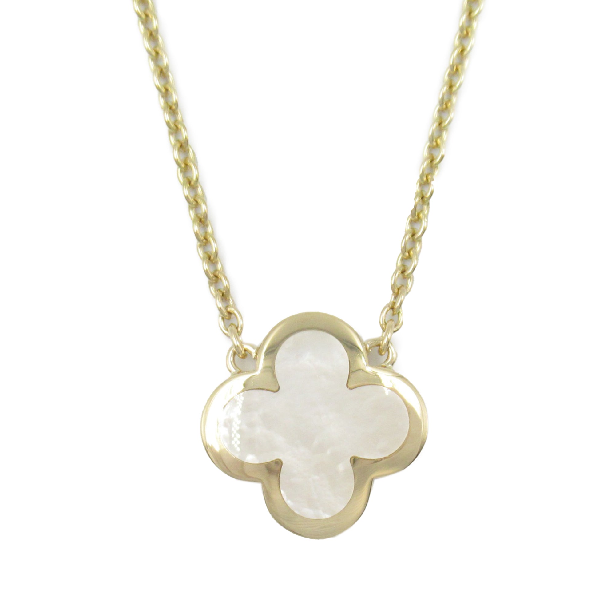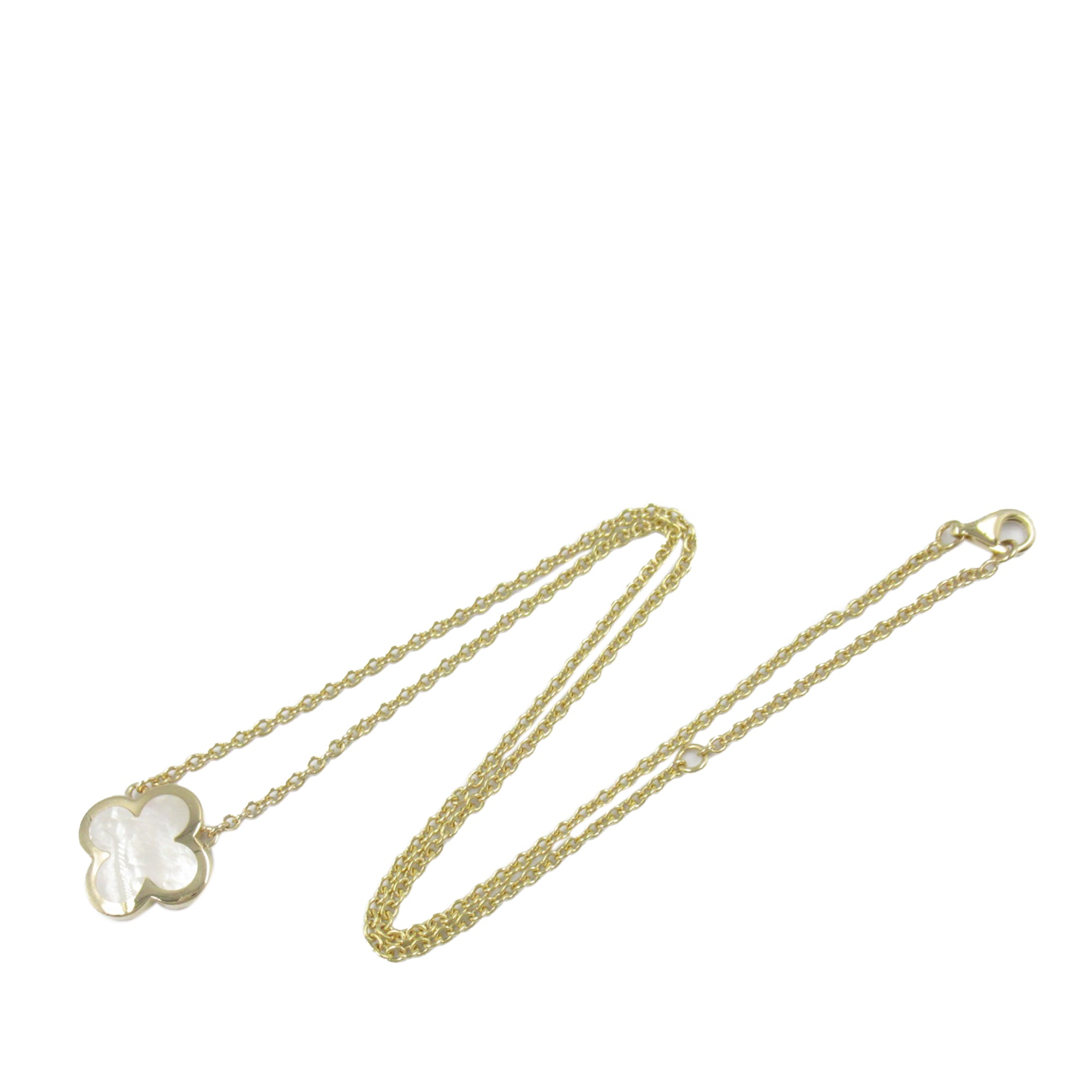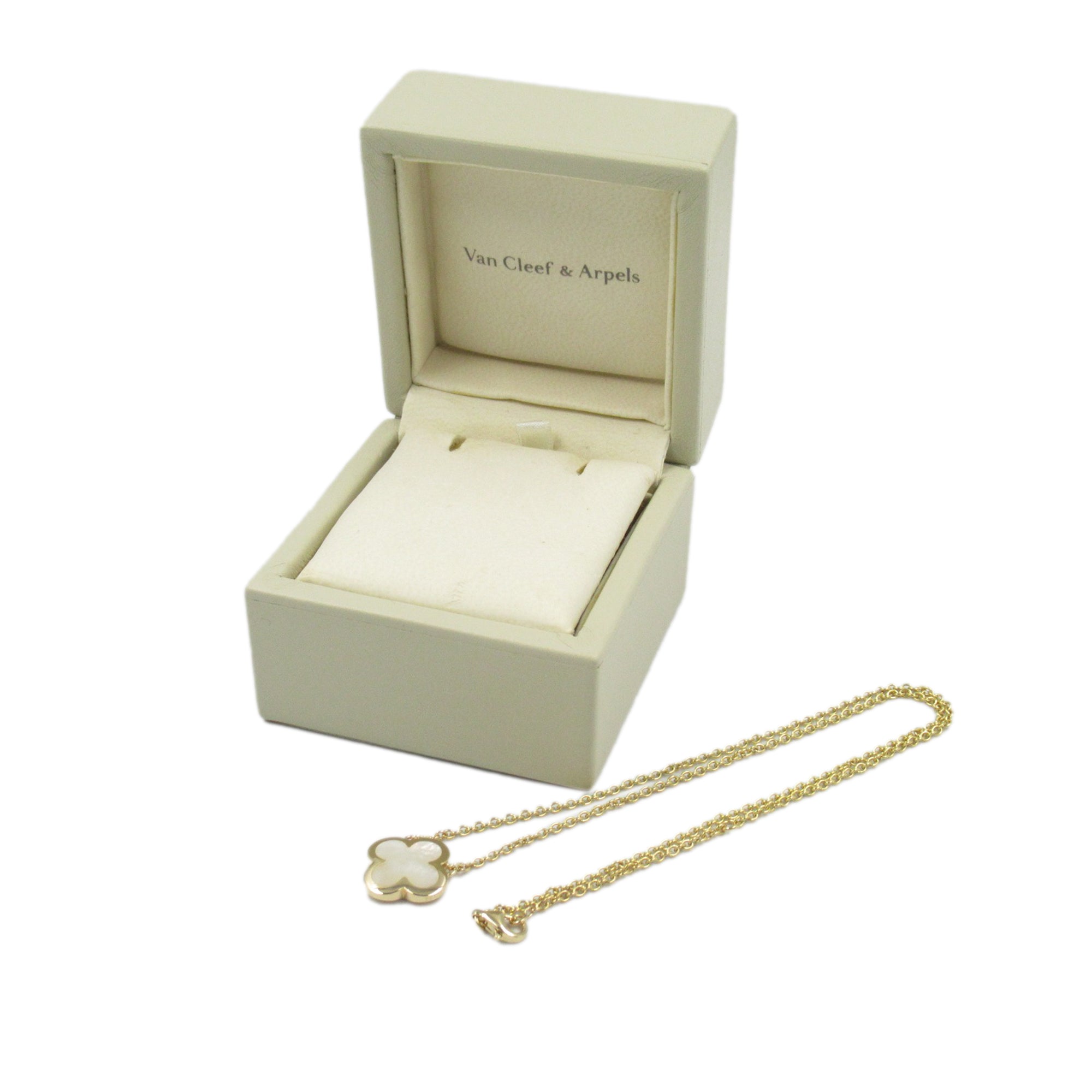 This Necklace features an 18k Yellow Gold body, a Mother of Pearl Alhambra pendant, and a lobster claw clasp closure. Measurements: Pendant: 1.6cm Width x 1.6cm Height Inclusion: box. Retail Price: 3750.00