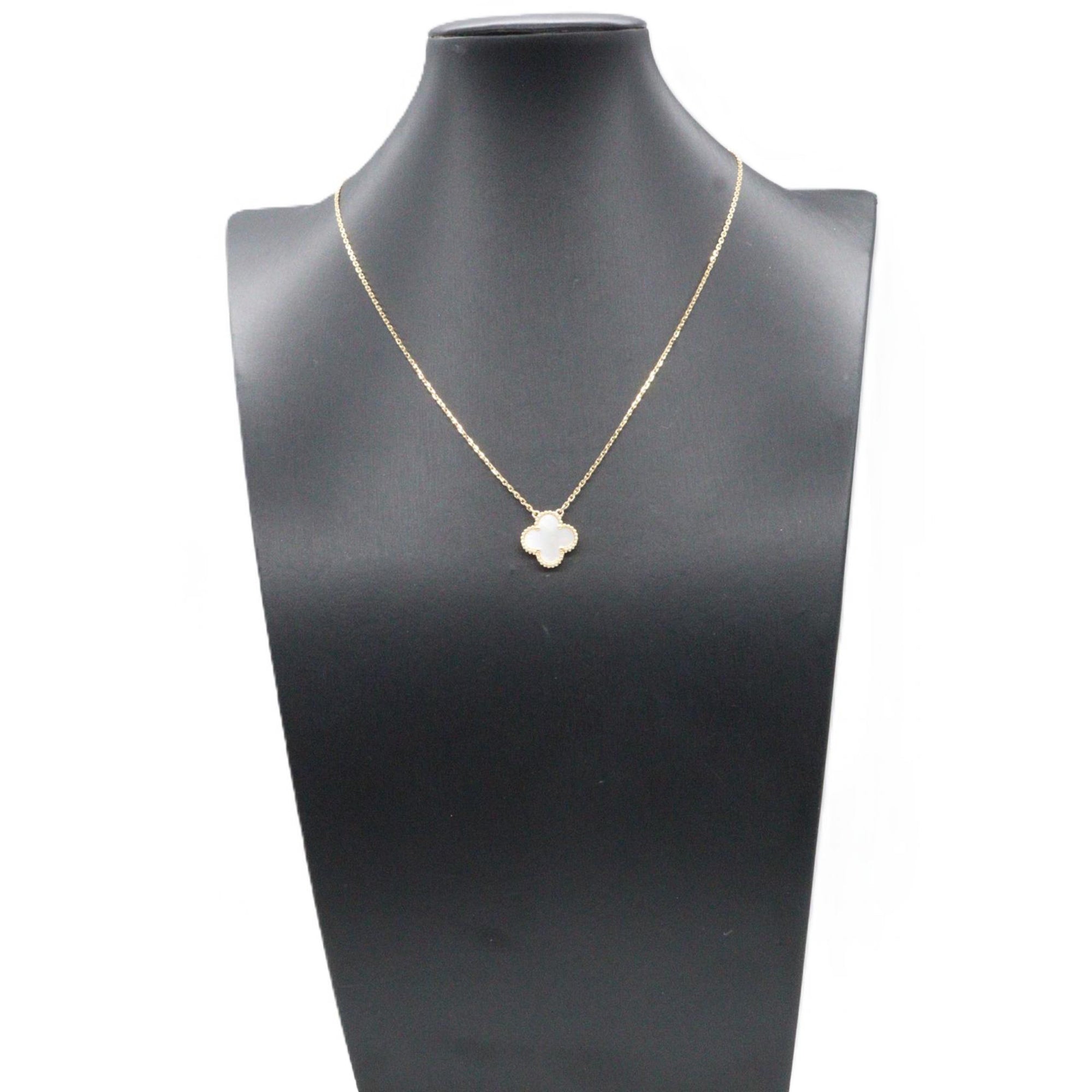 This necklace features an 18K yellow gold body, a mother of pearl embellished pendant, and lobster clasp closure. This item includes a repair certificate. Motif Measurements: W1.50cm x H1.50cm Retail Price: 2830.00