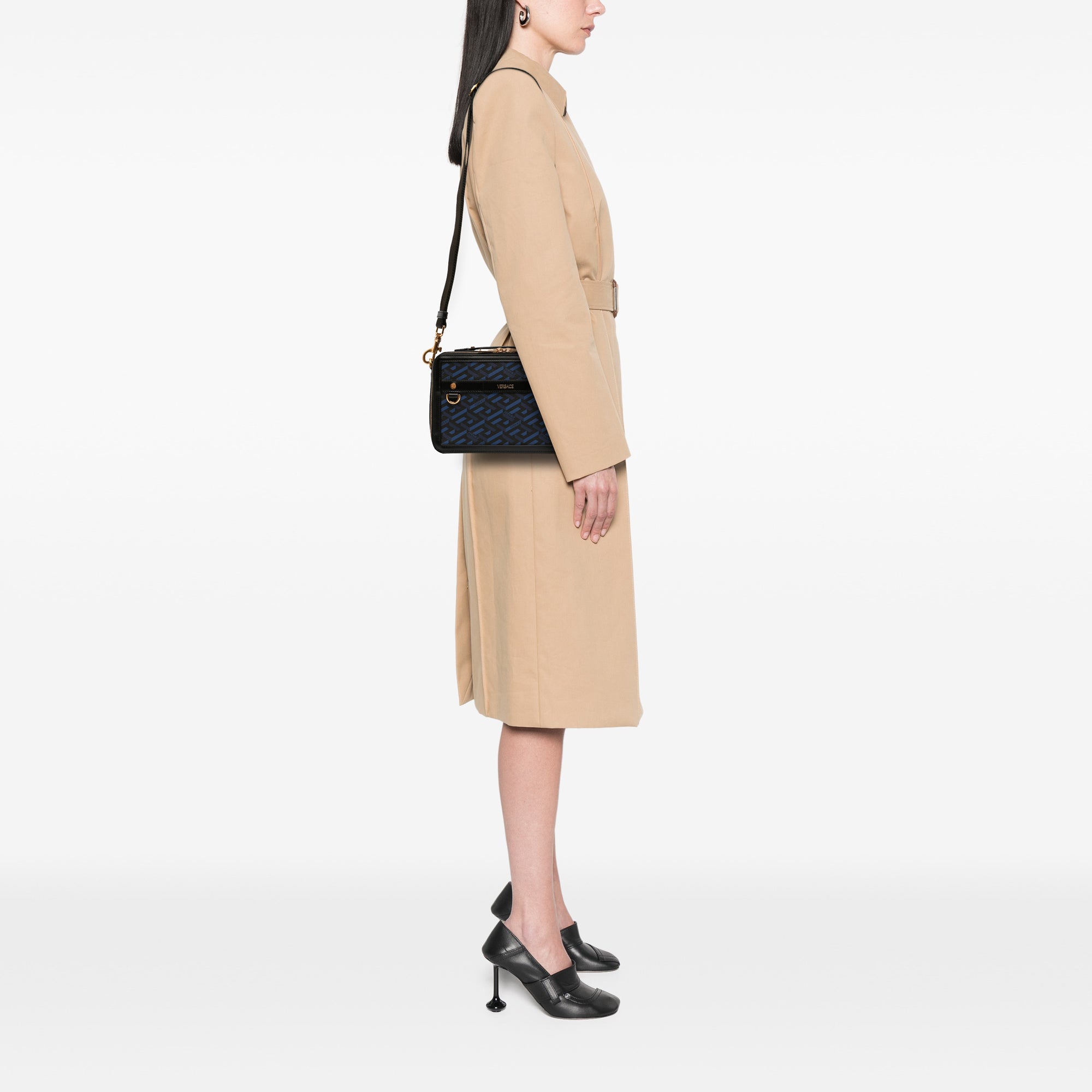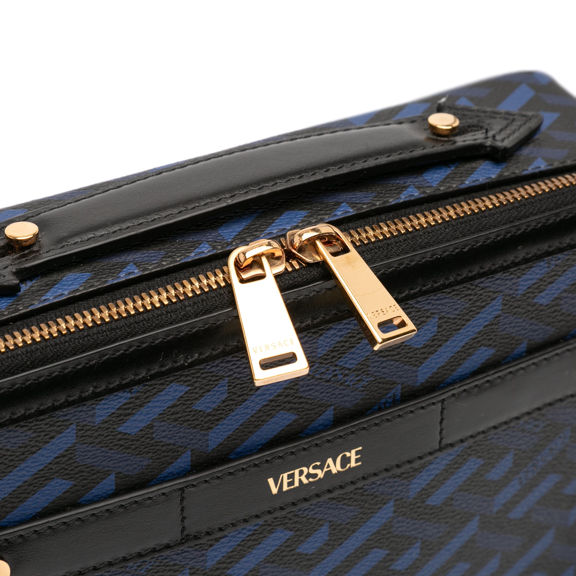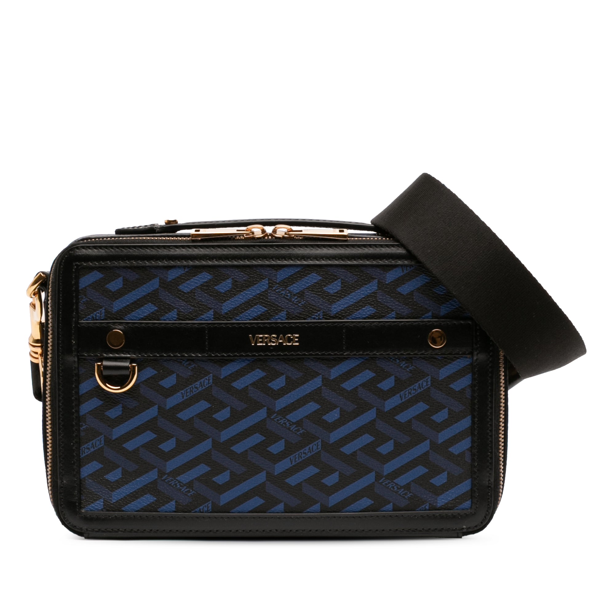 Versace Coated Canvas La Greca Zip Around Messenger Bag