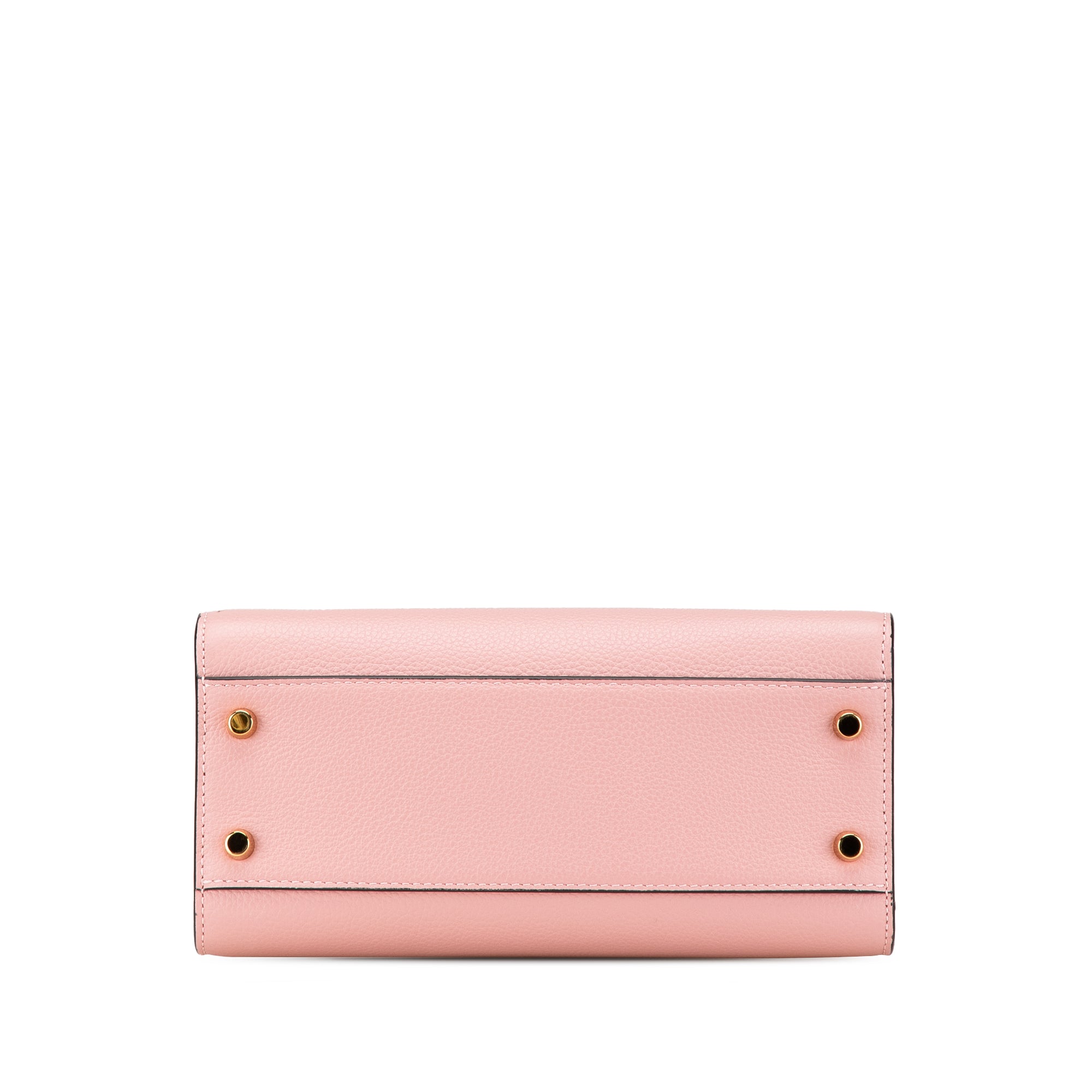 The Virtus features a leather body, a rolled leather top handle, a detachable flat leather shoulder strap, an open top with magnetic snap closure, an exterior slip pocket, and an interior slip pocket. Inclusion: Dust bag. Retail Price: 1450.00