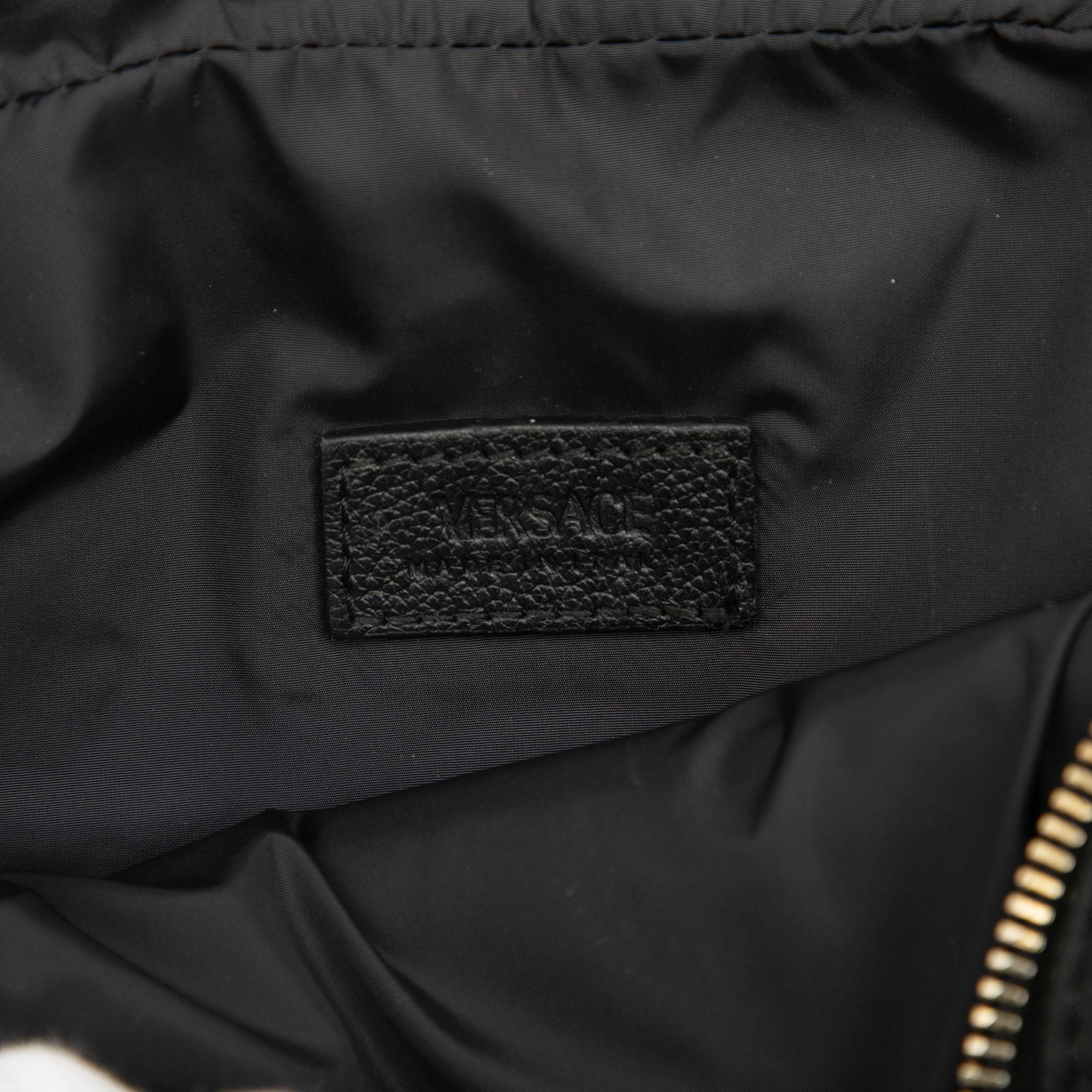 This crossbody bag features a leather body, an adjustable flat canvas strap, a top zip closure, and an exterior front slip pocket. Retail Price: 1550.00