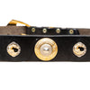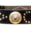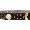 Vintage 90s Gianni Versace belt in black leather featuring bold studs and signature medallion embellishments. An iconic piece of Italian glamour.