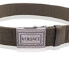 Once Issued For The Bold, Now Ready For a Second Life - This Military Green Unisex Belt From Versace Marches In With Unmistakable Character. Crafted From Sturdy, Structured Fabric In a Deep Army Green Hue, It Features The Iconic Greek Key Pattern Woven Into Its Length - a Nod To The House's Classical Roots And Enduring Strength. Genuine Leather Trims Lend Polish And Durability, While a Silver Metal Buckle Proudly Bears The Signature Versace Logo, Gleaming Like a Medal Earned. Sized 80/32, With a Total Strap Length Of 34.5 Inches (87.6 Cm) And a 1.5-inch (4 Cm) Width, It Offers Both Form And Function. Originally Retailed At 295 Euros, This Piece Now Awaits a New Chapter - Whether Cinching The Waist Of a Vintage Collector Or Sharpening a Modern Silhouette.