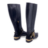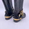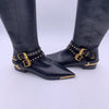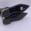 Versace Black Leather Boot. It Features Gold Metal Detailing Such As Studs, 2 Buckles At The Ankle And The Pointed Toes. Zip Closure Internally. Size: Eu 6 (The Size Shown For This Item Is The Size Indicated By The Designer On The Shoes). Made In Italy. Retail Price Is 1590 Euros.